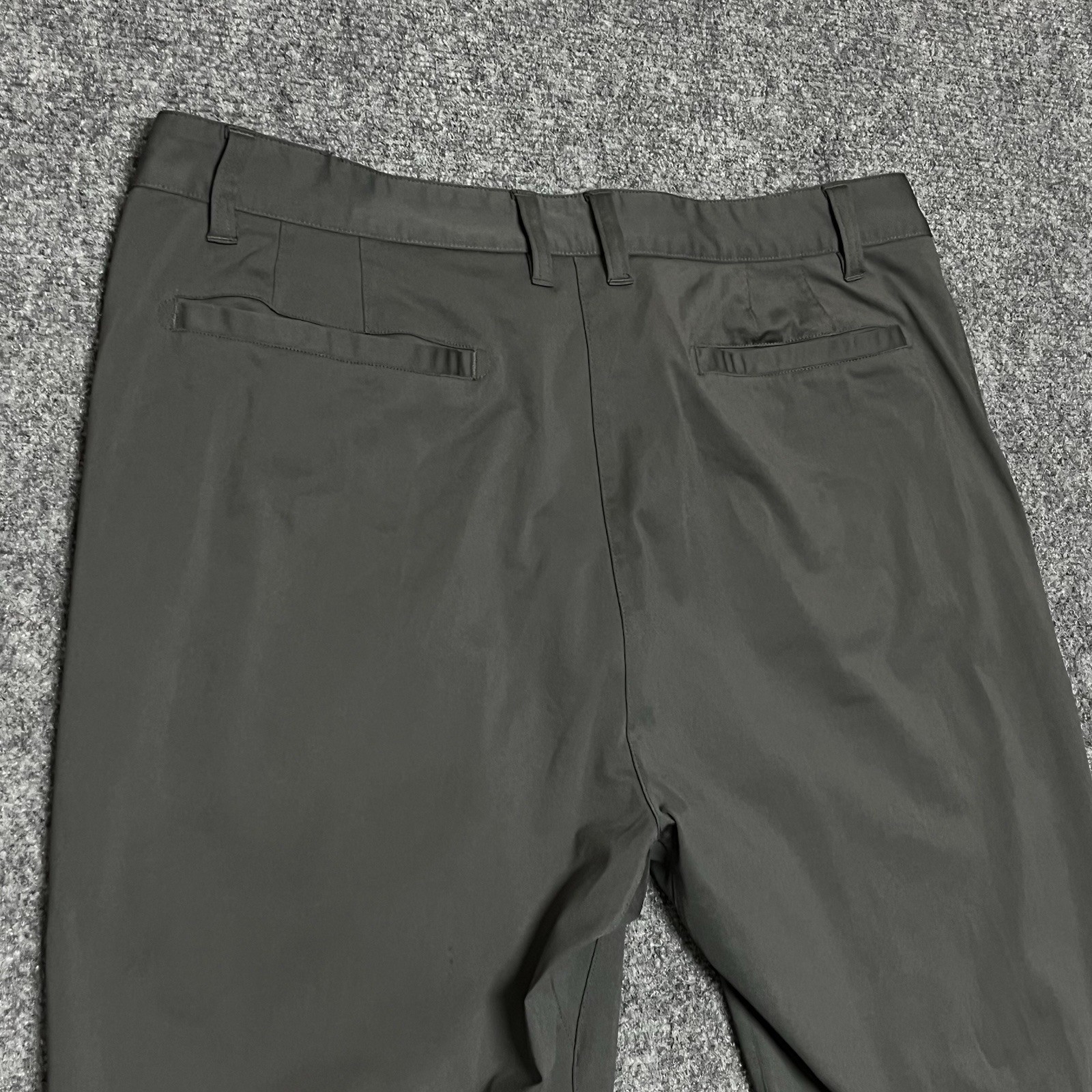 The Rhone Commuter Pants in men's size 36x32 are versatile gray chinos designed for both work and casual occasions. Made from a stretch performance fabric, these pants offer comfort and flexibility. The mid-rise waist and flat front give a sleek and classic look, while the 5-pocket design and zipper closure add functionality. Ideal for year-round wear, these pants feature a straight leg silhouette and are machine washable for easy care. Perfect for the office, golf course, or city outing, the Rhone Commuter Pants combine style and practicality in one versatile piece.