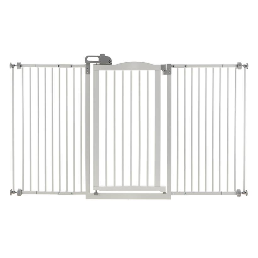 HorseLoverZ Richell Tall One-Touch Gate II Wide Richell's Tall One-Touch Gate II Wide is a tension mount gate designed to fit a wider selection of doorways, from 32.1-62.8'' without damaging wall surfaces. The door handle allows you to open the wooden door in either direction with the touch of one button! Tall One-Touch II Wide comes in Autumn Matte or Origami White to to complement your home.Features: Fits doorway or hallway openings from 32.1-62.8''Tension-mount design keeps gate permanently in placeDoor opens in both directions to allow ease of movementLatched gate handle locks/unlocks easily with one handRubber stoppers protect wall surfacesComes in two colors: Autumn Matte and Origami WhiteRecommended for dogs 8.8 - 88 lbs1.5'' space between wood spindlesDoor opening is 20.1'' wideThe Door: Made of natural woodThe Frame: Made of steelSide Frame B: about 4 inch wideSide Frame C: about 7.5 inch wideSide Frame D: about 11 inch wide About Us We specialize in all types of equestrian equipment and apparel for both the English and Western rider. Shop with us and you will find everything you need for your horse, barn, farm, tack shop and shows - we even have pet, garden & pond products too! Return Policy