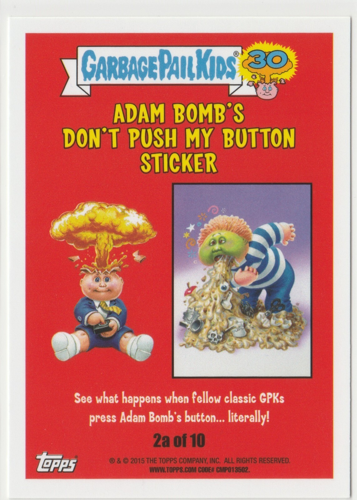 Richie Retch #2a of 10 Topps Garbage Pail Kids GPK 2015 30th Anniversary Series Adam Bomb's Don't Push My Button Sticker subset personal stock photos centering of card may vary compared to listed images