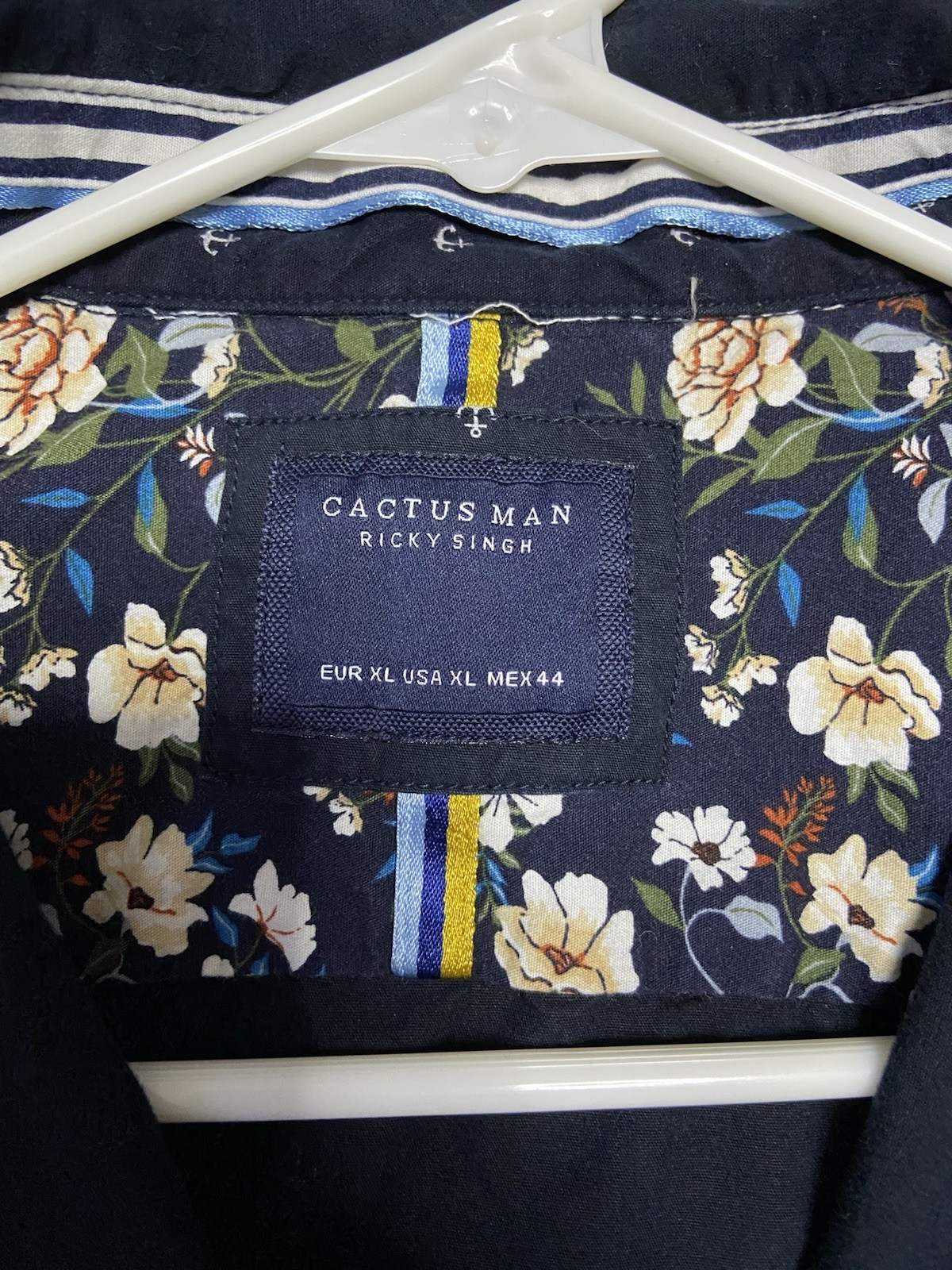 Cactus Man Ricky Singh Shirt Men's XLarge Navy Blue Anchor Button Down. Condition is Pre-owned - Excellent. Shipped with USPS Ground Advantage.