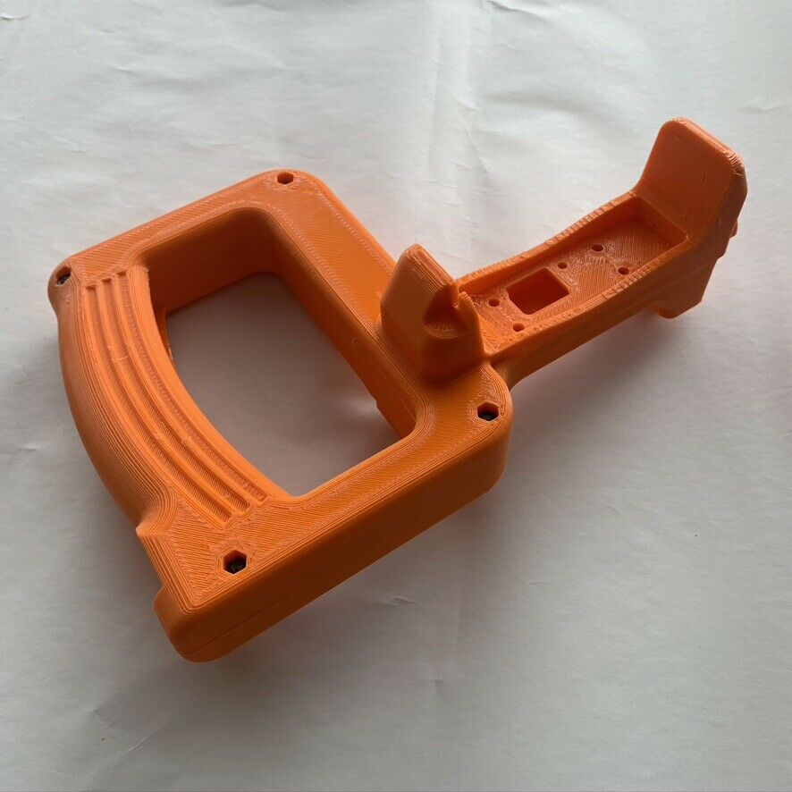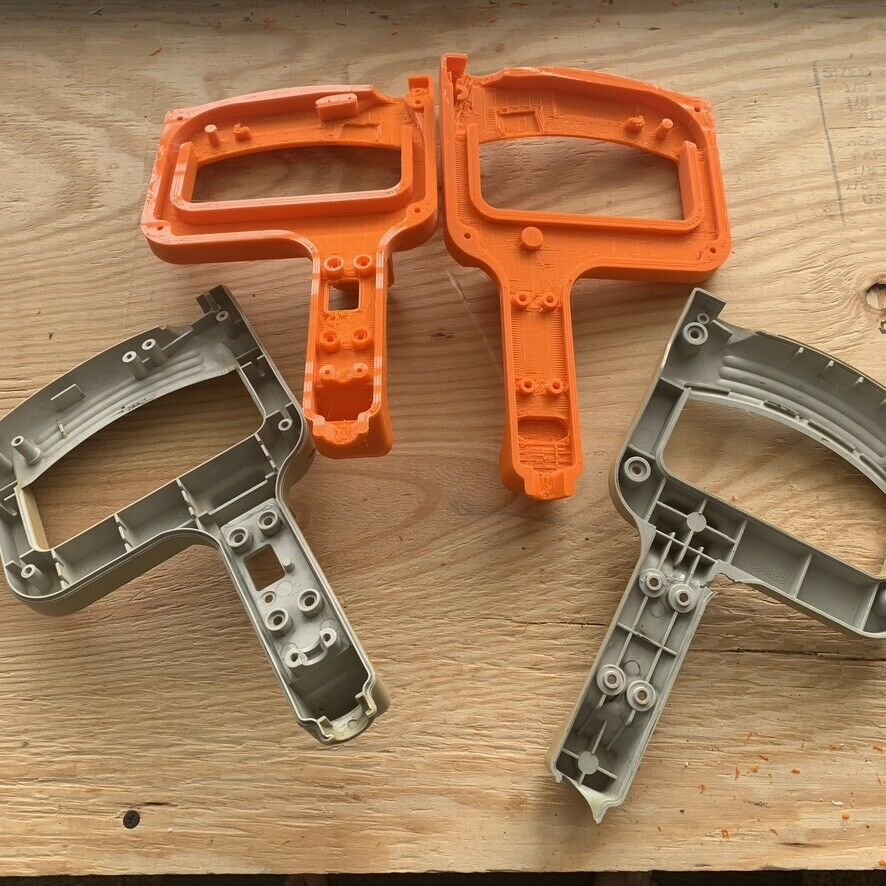 Ridgid Miter Saw Handle Upper and Lower for MS1250 and MS1250LZ 828056 (lower) and 828062 (upper) This is a 3d redesigned and 3d printed solution for broken Ridgid Miter Saw Handle Upper and Lower for MS1250LZ1 - 828056 (lower) and 828062 (upper). The only difference is that the handle has been redesigned internally to be exceptionally stronger than the original handle that was prone to breaking and cracking under minor stress. Note this only the plastic handle housing and does not include any of the other internal components such as the switch or springs. These handles use an M4 nut and bolt to secure the two halves together and you will need a metric Allen / Hex bit to assemble. 3d printing is an additive manufacturing technology that in this case uses PETG filament (stronger and higher degree of durability and resistance to outside conditions) but instead of injection molding, 3d printing offers a stronger internal structure since this handle specifically is made up of over 500 layers of alternating infilled patterns made of honeycomb shape. I am usually able to ship same day, but I have a few days for handling on here in case I run a little behind and have to print more. Please note that as this is 3d printed these handles take about 18hrs to print and I do my best to clean support material and minor defects so please be patient with me if I miss any defects and I'll do my best to help you with any issues if they arise. So far over 200 happy customers with new 3d printed handles on their miter saws! Here's a link to a YouTube video where the switch is replaced and essentially the handle and internals on a similar model: https://www.youtube.com/watch?v=f4OLmpzj3Zw Happy woodworking!