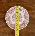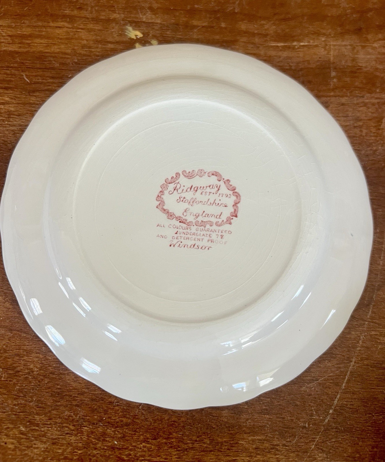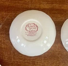This charming 4-piece matching set from Ridgway Staffordshire, England features the classic “Windsor” pattern in rich red (rose) transferware, known for its warm, cottage-style floral detail and scalloped edges. These pieces show why English transferware remains so collectible — crisp underglaze lines, durable color, and that unmistakable vintage charm. Perfect for cottagecore displays, table settings, or replacing missing pieces in a Ridgway set. 🌸🇬🇧✨ Measurements Bowls (2): • Diameter: approx. 5..25” • Height: approx. 1.25” Plates (2): • Diameter: approx. 6.0” • Height: approx. 0.75” Condition Excellent vintage condition with no chips, cracks, or crazing visible in photos. Clean and well cared for.
