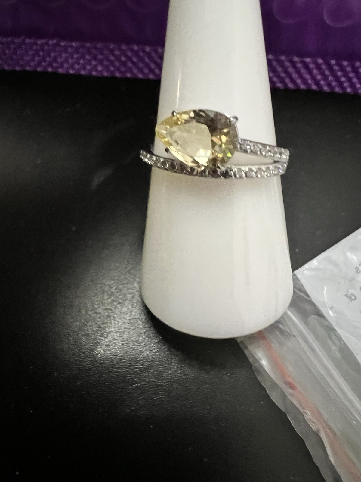 RBP 5873 The Sterling Club Main Stone: Genuine Citrine Matarials: .925 Solid Sterling Silver MSRP: $250 The "Ring Bomb Party, RBP 5873, The Sterling Club, Genuine Citrine" is a Sterling Silver ring featuring a genuine Citrine gemstone in a circular shape. It is designed in the USA and belongs to The Sterling Club collection. The ring has a band style and is adorned with a beautiful Citrine stone, which is known for its warm yellow hue. This elegant piece of jewelry is perfect for adding a touch of sophistication and color to any outfit.