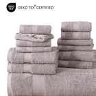 Glow your bathroom up with ’s 18 piece luxury towel set: Boasting a 100% cotton, terry weave construction, this towel set is an invaluable addition to your family life. With its thick, plush feel and its high water absorption, these towels will provide a cool, refreshing feel on your skin after a morning shower. Available in 10+ colors, designed to brighten up any bathroom décor. Machine Wash cold first time before use and expect lint levels to go down over time with frequent use. Do not bleach. Tumble dry low and use no (or minimal) heat to dry/iron towels. 100% Cotton Towels Set - Step into a world of luxury with our premium 100% Ring Spun Cotton Bathroom Towel Set, guaranteeing a smooth and light feel on all skin types as well as offering exceptional absorbency. Boasting a terry weave construction, these bath towels are extremely Durable, Highly Absorbent & suitable for outdoor use. Luxury 18 Piece Towel Set - This generously sized 500 GSM Towel Set for Bathroom includes - 4 Bath Towels (28 x 54 inches), 8 Washcloths (13 x 13 inches) and 6 Hand Towels For Bathroom (16 x 28 inches) – perfect for a family gift or accommodating large numbers of guests. Perfect for home décor - Finished in a Light, Metallic shade of Platinum with a classic Pique border, this Bath Towel Set will certifiably add a touch of sophistication to any bathroom. Available in 15+ colours. OEKO-TEX Certified - These Towels for Bathroom are OEKO-TEX Standard 100 certified which means that they have been rigorously tested, sustainably produced and are free from over 300 harmful chemicals and substances, making it suitable for all skin types. Wash & Care instructions - These Bathroom Towels are Machine Washable & Tumble Dry Safe. Avoid using bleach/softeners. Wash darks separately & before first use. As these towels come in vacuum sealed compressed packaging, expect towel to fluff up after first wash. Pure cotton towels will shed less lint after each subsequent wash.