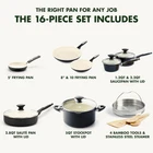 Rio Healthy Ceramic Nonstick 16 Piece Cookware Pots and Pans Set, Pfas-Free, Di SET INCLUDES: 5”, 8", and 10” frying pans, 1QT and 2QT saucepans with lids, 3QT sauté pan with lid, 5QT stock pot with lid, stainless steel steamer, bamboo solid spoon, bamboo slotted spoon, bamboo solid turner, bamboo slotted turner REINFORCED WITH DIAMONDS:Metal utensil safe, GreenPan's original diamond-infused nonstick coating offers remarkable durability, balanced heating, and effortless cleanup TOXIN-FREE: GreenPan's Thermolon healthy ceramic nonstick coating is free of PFAS, PFOA, lead, and cadmium TOUGH ALUMINUM BODIES: The heavy-duty aluminum construction offers extreme strength with quick and even heating every single time BUILT FOR OVEN COOKING: Oven and broiler safe up to 350°F and suitable for all stovetops, except induction ERGONOMIC HANDLES: This set’s stay-cool Bakelite handles are designed to give you a sturdy, comfortable grip without overheating ENJOY THE VIEW: The durable glass lids keep heat and moisture inside so you can watch all the action on the outside EASY TO CLEAN: These pans are dishwasher safe for easy cleanup, but most messes will wipe clean Add a touch of color to your kitchen with the vibrant style of the GreenPan Rio collection. This 16-piece cookware set features all the pots and pans you need to make your meals cleaner. Why? Each of these pots and pans features our Thermolon healthy ceramic nonstick coating—an easy release and wipe clean coating that’s free of PFAS, PFOA, lead, and cadmium for worry-free cooking. Unlike many other nonstick coatings, it will never release toxic fumes, even if it’s overheated. This durable coating is reinforced with diamonds to provide peak nonstick performance longer. The set’s heavy-duty construction gives you even heat distribution while the stay-cool Bakelite handles give you a comfortable grip and total control. Durable glass lids give you an easy view of your meal in progress without sacrificing heat. Dishwasher safe. These pans and lids are oven safe to 350°F. This cookware set includes: 5”, 8”, and 10” frypans; 1.2QT and 2.2QT saucepans with lids; 2.8QT sauté pan with lid; 5QT casserole with lid; stainless steel steamer; and 4 bamboo tools.. 21.65 inches x 9.06 inches x 12.8 inches. Weight: 19.56 lb Closure Material Glass Color Black Material Ceramic, PFAS Free Nonstick, Aluminum, Bakelite Handles Material Type Ceramic, PFAS Free Nonstick, Aluminum, Bakelite Handles Global Trade Identification Number 00885837019926 Is Oven Safe Yes Handle Material Bamboo,Metal,Stainless Steel Size 16 Piece Cookware Pots and Pans Set Material Type Free Cadmium Free, Perfluorooctane Sulfonate (PFOS) Free, Perfluorooctanoic Acid (PFOA) Free, Bisphenol-A (BPA) Free, PFAS Free, Lead Free Is the item dishwasher safe? Yes Compatibility Options dishwasher safe Included Components Set Includes: 5”, 8” & 10” frypans, 1.2QT & 2.2QT saucepans with lids, 2.8QT sauté pan with lid, 5QT casserole with lid, stainless steel steamer and 4 bamboo tools