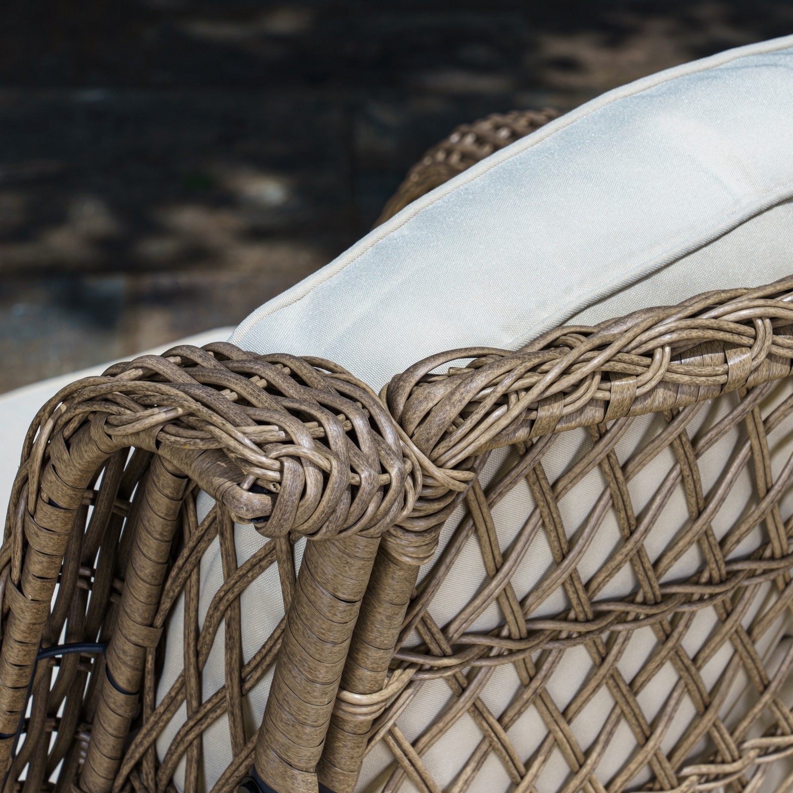 Relax in comfort and style with the Rio Vista Outdoor Wicker Swivel Glider Chair set from Tortuga Outdoor. Perfectly designed for any outdoor space, including small balconies, front porches, sunrooms, and backyard decks. The sturdy powder-coated frame and all-weather resin wicker construction make these chairs durable and long-lasting, while the 3" thick cushions provide added comfort. Available in Sandstone Wicker with Beige Cushions or White Wicker with Navy Cushions.Features: Available in Sandstone with beige cushions or white wicker with navy cushions Fits most outdoor areas like a deck, balcony, sunroom, or front porch Durable powder-coated frame Resin wicker is stain, water, UV, crack, and split resistant Includes 2 swivel glider chairs 100% spun polyester seat and back cushion Free Shipping Over $49.99* Details Rio Vista Outdoor Wicker Swivel Glider Chair (Set of 2) Product Description: Relax in comfort and style with the Rio Vista Outdoor Wicker Swivel Glider Chair set from Tortuga Outdoor. Perfectly designed for any outdoor space, including small balconies, front porches, sunrooms, and backyard decks. The sturdy powder-coated frame and all-weather resin wicker construction make these chairs durable and long-lasting, while the 3" thick cushions provide added comfort. Available in Sandstone Wicker with Beige Cushions or White Wicker with Navy Cushions. Features: Available in Sandstone with beige cushions or white wicker with navy cushions Fits most outdoor areas like a deck, balcony, sunroom, or front porch Durable powder-coated frame Resin wicker is stain, water, UV, crack, and split resistant Includes 2 swivel glider chairs 100% spun polyester seat and back cushion Mildew and fade-resistant fabric Some assembly required (hardware and tools provided) 1-year limited warranty Dimensions: Swivel Glider28'' L x 32'' W x 36'' H Cushion3'' Thick