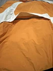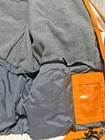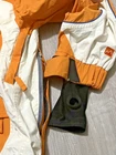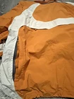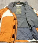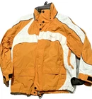 Vintage Rip Curl 90s Full Zip Snowboard Ski Jacket Zippered pockets under flap, Venting on sides and back, Finger glove liner, Zipper, hook/loop closure. Waterproof lower back, detachable powder skirt, Interior zipper pocket and ID/pass pocket, Hook Loop cinch Cuffs, Logo, color-block orange and white Men's Small Chest 48 inches Waterproof nylon, polyester lining