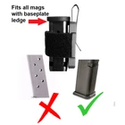 RipCord One™ is a 3D printed Universal* magazine holder for your pocket or waistband. This new model of RipCord removes the "wings" found on our original V2 model. This provides easier access to your magazine and works with all magazines that feature a baseplate with a ledge on the side. *Universal for all mag sizes and brands that feature a baseplate "ledge" (see photo #2 for details) RipCord One Features: 1. Universal* Magazine fit. 2. 3D Printed Body with Anodized Aluminum Rear Plate 3. Adjustable clip height by loosening 4X front screws and sliding clip to desired position. DESIGNED AND MADE IN THE USA. DISCLAIMER: The purchase of a RipCord™ includes only the mag holder. Magazine and ammunition are not included. FDM 3D Printing is a growing technology, but is not perfect. There will be small variations in texture or color from one part to the next. DO NOT submerge product in liquid. Product should be cleaned with a damp cloth using soap and water. AVOID placing other items (cell phones, keys, wallet, etc.) in the same pocket as your mag holder. They could be damaged by the metal clip or restrict your access to your spare magazine. DO NOT over-torque screws if you adjust clip position. WARRANTY: We offer a limited lifetime warranty on the 3D printed portion of the holder. If the print ever breaks during regular use we will replace it free of charge.