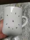 The Rise And Shine Morning Culture 12 Oz. Coffee Mug is a white ceramic mug featuring an embossed design of letters, numbers, and words related to food and drink. With a contemporary style and a capacity of 12 fl oz, this coffee mug is suitable for both hot and cold beverages. Perfect for all occasions, this round mug is ideal for teens and unisex adults looking to add a touch of fun and curiosity to their daily routine. Made with ceramic and porcelain materials, this original coffee mug tea cup from the brand Morning Culture is a must-have for collectors and home enthusiasts.