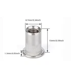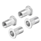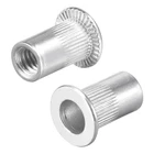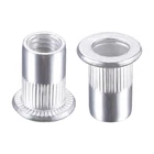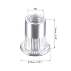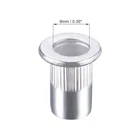 Rivet Nut 1/4"-20UNC 100Pcs Aluminum Finish Flat Head Rivnut Threaded Insert Nut Knurled Body Rivet nuts ,1/4"-20 rivet nuts threaded insert 100 Pcs 1/4-20 Aluminum Flange Rivet Nut, UNC Flat Head Threaded Insert Nuts Thread pitch: 1/4-20 Grip Range: 0.7mm-4mm / 0.027"-0.125"; Body Diameter: 8.9mm / 0.350" Size: Head height, 1.4mm, Head diameter, 12.1mm; Total Length, 15.1mm; Installed Length, 9mm,Application Hole Diameter: 9mm