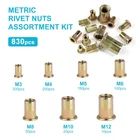 【Specification】 Name: Rivet nut Material: Carbon steel, zinc plated Type: Flat head, Knurled body Package: Durable plastic box 【Warning】 The product doesn’t suitable for children, please keep them away from kids. 【Application】 Perfect for automotive, furniture, decoration and other electrical and industrial products. 【RIVET NUT SIZE】: In this set, we provide 7 size of rivet nut, includes: M3---300pcs, M4---200pcs, M5---150pcs, M6---100pcs, M8---50pcs, M10---20pcs, M12---10pcs, total 830pcs. 【FEATURE】: Head Type: Flat Head; Nuts have a work-hardened surface providing high-strength, load-bearing threads. 【WIDE APPLICATION】: Our rivet nuts are used to provide firm and problem-free attachment for screws and bolts in home improvement and for a wide range of manufacturing including automobiles, aircraft, appliances, furniture, decoration, and more. 【DURABLE QUALITY】: These rivet nuts boast superior strength and offer corrosion-free, rotation-resistant performance and acid resistant thanks to their precision threading and quality construction from galvanized carbon steel.You will no longer worry about them rusting and breaking when installing. 【THICKENE AND CLEARLY-LABELED TOOL BOX】: These nuts kit is lightweight, very convenient to carry. Meanwhile, the transparent storage box had been thickened, more durable and sturdy than others, enough to accommodate all items safely.