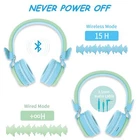 Riwbox BT05 Bluetooth Kids Headphones Wireless Foldable Headset Over Ear with Volume Limited and Mic/TF Card Compatible for iPad/iPhone/Tablet (Green&Blue) Normal and Kids Mode:BT05 kids headphones have 2 switchable Volume Limited levels for hearing protection.The headphones can be switched to normal mode and kids normal(85dB Volume Limited)by pressing the button M.The volume can be adjusted by pressing the volume button.BT05 kids headphones were specifically designed for toddlers and children.The wireless headphones bring comfortable touch feeling so that kids can safely use them in the car,on the airplane,at school and home. TF Card Design and Built-in Mic: BT05 Bluetooth headphones provide a quick and stable connection with your Bluetooth enabled devices like ipad/iphone,tablets,PC,TVs within 10 meters. The built-in mic allows hands-free talking,lets you pick up calls by pressing the button on the side of headphones.BT05 wireless headphones work with a built-in TF card slot, so you can enjoy music wherever you are. 3.5mm Audio Jack: The headphones also work with the standard 3.5mm headphone jack, ideal for using with all the audio devices with 3.5mm jack, including iPod, iPhone, iPad, Android smart phones, Tablets and more. We provide the 3.5mm audio cable for free in the package, it can be used when the built-in battery is run out under wireless working status, so that you can still listen to music and answer the phone. Foldable, Adjustable and Comfortable: The headband is adjustable and stretchable for you to find the desired angle you like to fit in. It is flexible to accommodate a wide range of head sizes. Soft earmuffs deliver comfortable feelling while listening.It won't cause any negative effect to your kids even with long time wearing and touching.The foldable headband is designed not only for saving space but also for portable to carry when traveling or work out. Unique Design and High Quality:Unique in designs and exquisite in packaged, the kids headphones are made from high-quality materials.Headphones are super durable and comfortable for kids to wear.The cute wings design is impressive and inspires your child's imagination and creativity.Every child has a dream of flying.We sincerely hope that the children can wear BT05 kids bluetooth headphones for learning,entertaining and chasing their dreams.This is the meaning of Riwbox BT05 wireless headphones. Shipping We offer FREE shipping on all orders! We ship within Three business days of payment, usually sooner. We use a selection of shipping services such as UPS, FedEx, USPS etc. We only ship to the lower 48 states, no APO/FPO addresses or PO Boxes allowed. Local pickups and combined shipping options are not provided at this time. Return You can return a product for up to 30 days from the date you purchased it. Any product you return must be in the same condition you received it and in the original packaging. Please keep the receipt. Payment We accept payment by any of the following methods: PayPal Please pay as soon as possible after winning an auction, as that will allow us to post your item to you sooner! Feedback Customer satisfaction is very important to us. If you have any problem with your order, please contact us and we will do our best to make you satisfied. Contact Us If you have any queries, please contact us via ebay. We usually respond within 24 hours on weekdays. Please visit our eBay store to check out other items for sale! Thank you for shopping at our store.
