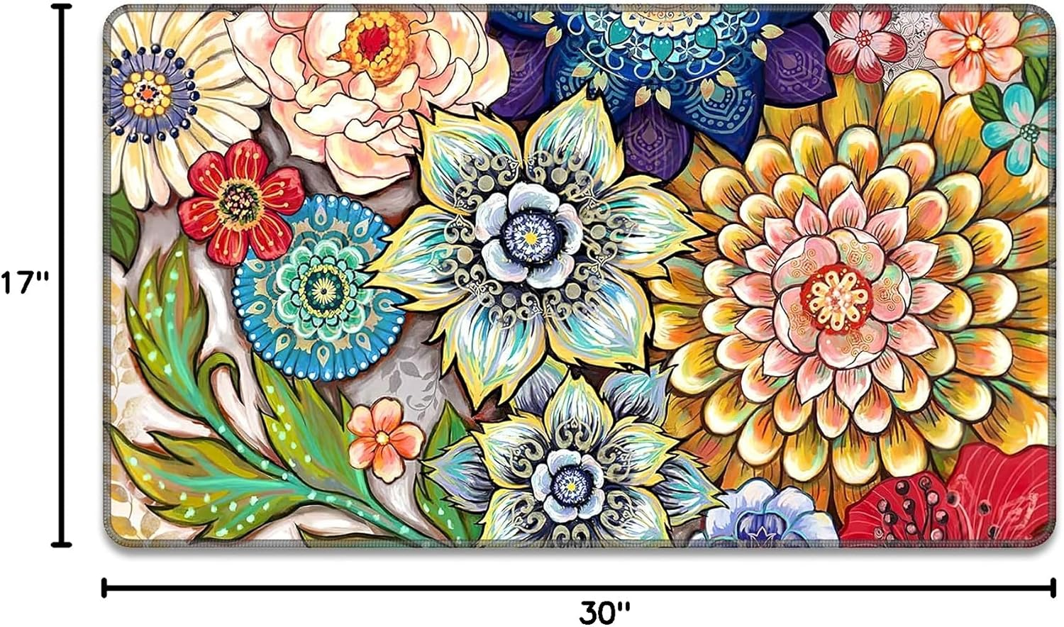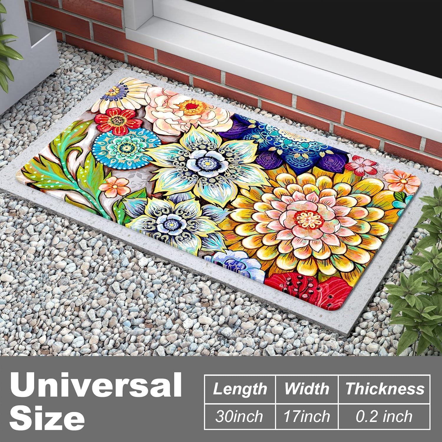 Store New Arrivals Add to Favorite View Feedback Contact Rnivvi Front Door Mat, 30"X17" Cute Flower Theme Indoor Outdoor Welcome Mat, Heavy Duty Low Profile Anti-Slip Entryway Rug for Home Entrance, Floor, Patio Entry, Mud Room, Mandala Floral Description Item model number Doormat-30x17-Colorful Mandala Style Modern Weave Type Hand Made Pattern Mandala Is Stain Resistant Yes Theme Floral Number of Pieces 1 Room Type Hallway Brand Rnivvi Material Suede Model Name Doormat-30x17-Colorful Mandala Rug Form Type Doormat Manufacturer Rnivvi Item Thickness 0.16 Inches Indoor/Outdoor Usage Both Item Weight 1.54 pounds Pile Height Low Pile Construction Type Handmade Material Feature soft, absorbent, and durable Special Feature Non Slip Color Colorful Mandala Shape Rectangular Back Material Type Rubber Recommended Uses For Product entrance, patio, garage, mud room, bathroom, dog area Product Dimensions 30"L x 17"W Product Care Instructions Machine Wash Size 30 x 17 Inch Personalized Entryway Rug: Outdoor door mats with unique design, elegant yet simplistic, goes well with any style of room and patio. Add this colorful welcome mat to your home to keey floor clean and add a little touch of art to your lifestyle Absorbent and Non-slip: Aesthetic decor door mat is crafted from absorbent suede and anti-slip rubber. The surface is soft, and can easily capture excess moisture and dirt. The anti-slip rubber backing can firmly grip the floor without unwanted sliding Versatile Size: Heavy duty anti-slip front door mat measures 30 x17 Inch, not huge size but pefect size for home entrance, patio, garage, mud room, bathroom and more. Low-profile design 0.25 inch thick and 100% lay flat, so doors won't get stuck Easy to Clean: Simply vacuum with a hand-held vacuum, sweep with a broom, or shake off outdoors or over garbage bins. For a deeper clean, wipe with a damp cloth and mild soap, or use a garden hose to rinse the mat outdoors Long Lasting Quality: Soft and thick entry rug has individually hand stitched edges, so no deformation or fray in prolonged use. Hd printed suede has great locking-color effect, so the indoor entrance door mat will not fade after repeated cleaning Product description Absorbent Suede Surface Traps excess moisture and dirt with ease, keep floor dry and clean. Anti-Slip Rubber Base Heavy duty door mat firmly grips the floor without unwanted sliding, more safe. Low-profile Design & 100% Layflat Front and back doors will not get stuck on the mat when opening and closing. Hand Stitched Edges No deformation, degumming, or fray in prolonged use. Long lasting Quality Easy to Clean Granule won't get stuck on mat. Clean with a vacuum, shake off outdoor or wash under running water. Versatile Size 30 x 17 inch, ideal for home entrance, front door, back door, patio, garage, mud room, bathroom and more. ABOUT US We offer the best prices around on high quality products. Our E-store includes media such as books, movies, music and games while offering electronics, toys, sporting apparel, clothing, tools, general home, garden items and more. SHIPPING We are always working hard to ensure your package arrives as soon as possible. Please understand that some factors like weather, high postal traffic, and the performance of shipping companies are outside of our control. We offer free shipping to the lower 48 states and ship within 2 business days of payment, usually sooner. We do not accept P.O. Boxes. Please provide a physical address. RETURNS We offer a 30-Day Return Policy on items which you are not completely satisfied with. You have the option for a full-refund or an exchange of the item. No returns are available on items shipped outside of the USA. PAYMENT We accept PayPal. CONTACT US This page content is yet to come Please ad us to your favorite seller and visit again later Thank You CUSTOMER SATISFACTION We try our very best to make sure every customer is completely satisfied. If there's a problem, message us! We're happy to help.