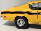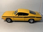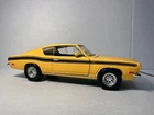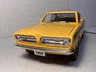 Road Signature 1969 Plymouth Barracuda 383 with Custom Wheels / Tires 1:18 Diecast. There is no box or base. The car has marks on it. Looks like the previous owner put a set of Nascar tires and wheels on it. It looks very good. The doors do not stay shut all the way.