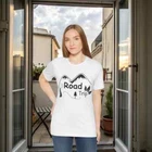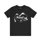 Description Take your love for road trips to the next level with our Road Trip Text Printed T-Shirt. Made with a slim fit, this shirt is perfect for both men and women. The round neck and short sleeves ensure comfort and style. Get ready to hit the open road in this must-have T-Shirt. Overview: This classic unisex jersey short sleeve tee fits like a well-loved favorite. Soft cotton and quality print make users fall in love with it over and over again. These t-shirts have-ribbed knit collars to bolster shaping. The shoulders are tapered for a better fit over time. Dual side seams hold the garment's shape for longer. Fabric: Made with 100% Airlume combed and ring-spun cotton, a lightweight fabric (4.2 oz/yd² (142 g/m²)) that is easy to layer, breathable. Perfect for active and leisure wear. Fit: The retail fit that is perfect for casual and semi-formal settings. The crew neckline adds a classic, neat style that's perfect for accessorizing. Origin ; manufactured in the US and internationally in humane, no-sweatshop, sustainable way. Fabric blends: Ash and Heather Prism colors - 99% Airlume combed and ring-spun cotton, 1% polyester; Heather and Solid Blend colors - 52% cotton, 48% polyester; Athletic Heather and Black Heather - 90% cotton, 10% polyester.