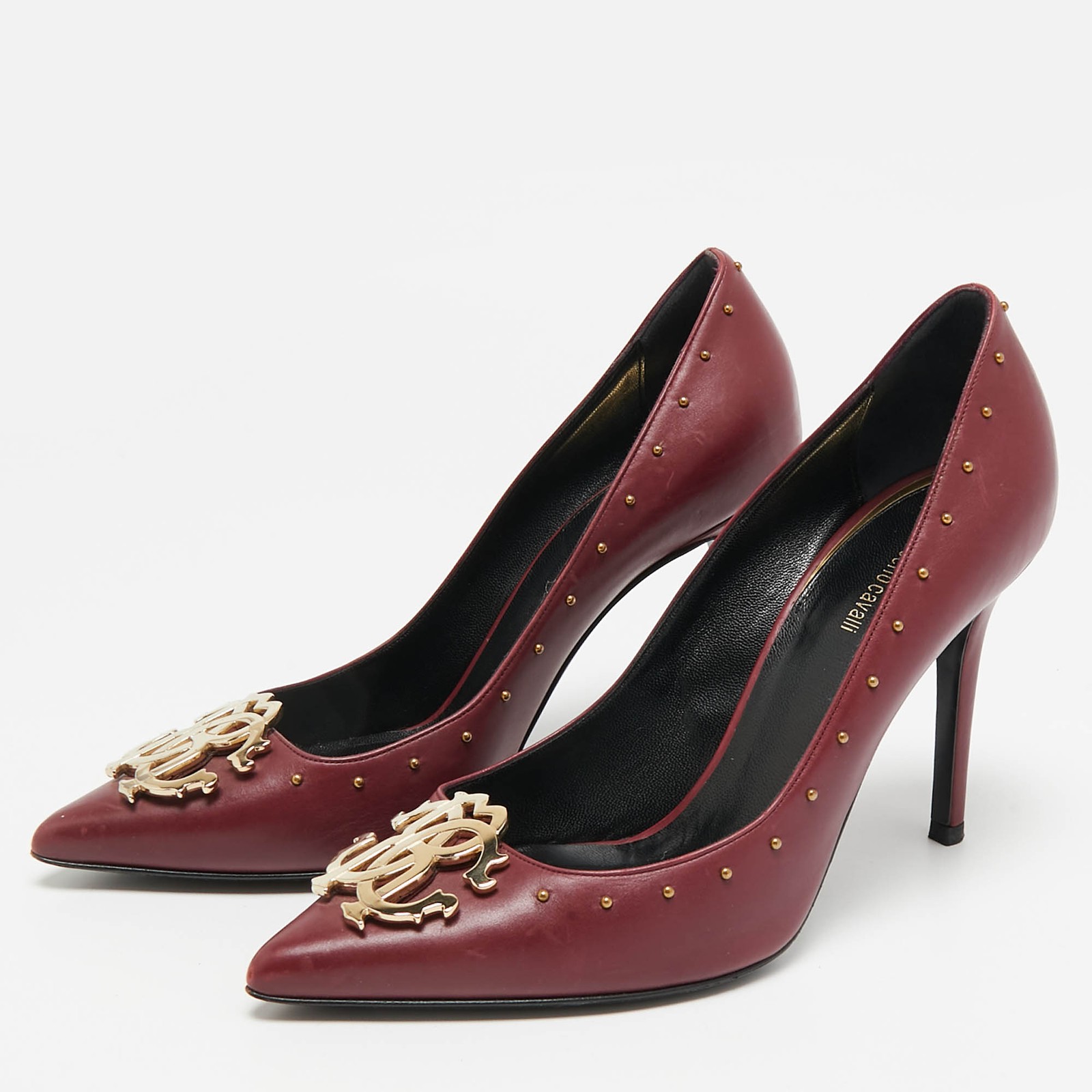 The perfect combination of timeless elegance and contemporary shape makes this pair of Roberto Cavalli pumps a true investment accessory. Updated with the brand embellishment on the front, the pair symbolizes the rich heritage of the brand. It comes created from leather and is elegantly raised on 9cm heels.Certified by The Luxury Closet - This item has gone through a detailed authentication process overseen by our experts. We offer a lifetime guarantee of authenticity on all our items. Import duties, taxes and charges are not included in the item price. These charges are the buyers responsibility. Please check with your country’s customs office to determine what these additional cost will be prior to buying. Our eBay Store About Us Contact Us Add to Favorite Sellers Roberto Cavalli Burgundy Leather Embellished Pointed Toe Pumps Size 38 $265.1 The perfect combination of timeless elegance and contemporary shape makes this pair of Roberto Cavalli pumps a true investment accessory. Updated with the brand embellishment on the front, the pair symbolizes the rich heritage of the brand. It comes created from leather and is elegantly raised on 9cm heels. Product Details Brand Color Burgundy Dimensions Material Leather Size 38 Outsole Width 8 cm Outsole Length 24.5 cm Heel Height 9 cm Includes The Luxury Closet Packaging Certified by The Luxury Closet This item has gone through a detailed authentication process overseen by our experts. We offer a lifetime guarantee of authenticity on all our items. How We Check The in-house team of experts at The Luxury Closet is highly trained to verify the authenticity and the condition of the luxury products. They ensure that only 100% authentic items are put on sale.The evaluation process is unique with its own mix of assessment criteria and differs according to the category. Each item is evaluated based on the following combination of hallmarks, hardware, stitching, symmetry, material, craftsmanship, stamping, codes, hologram stickers, and packaging. Our authenticators also check if the items have been modified or amended (e.g., aftermarket diamonds, replaced batteries, repaired bags, etc.) International Buyers Import duties, taxes and charges are not included in the item price. These charges are the buyers responsibility. Please check with your country’s customs office to determine what these additional cost will be prior to buying.