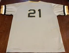 Show your love for baseball and the Pittsburgh Pirates with this Roberto Clemente #21 tee shirt jersey. Made by Associated Premium, this high-quality shirt is a must-have for any fan of the legendary player. The shirt is available in size XL and is perfect for men who want to wear their favorite team's jersey with pride. This shirt is a great addition to any sports memorabilia collection and is perfect for wearing to games or as a part of your everyday wardrobe. The shirt is made in Jersey and is part of the Major League (MLB) league. Get your hands on this shirt now and show your support for the Pittsburgh Pirates and Roberto Clemente.