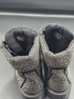 The Rock & Candy Boots in women’s size 9.5 are stylish bling boots featuring a closed toe design with a mid-calf shaft. These boots have a hook and eye closure and are made of a blended fabric upper material with faux leather outsole. They have a cushioned and lightweight construction, making them comfortable for all-day wear. The boots come in a classic black color with accents like fur trim, glitter, studded details, and sequins, adding a touch of sparkle and style to any outfit. Perfect for various occasions such as travel, weddings, parties, and more, these boots are a versatile and chic addition to any wardrobe.