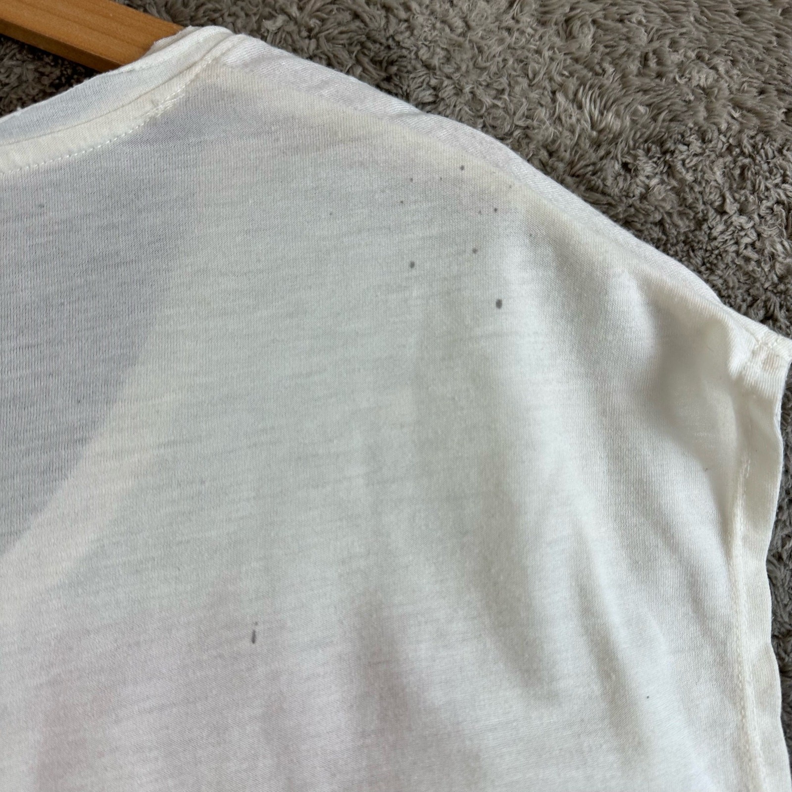 This Rock & Republic tee is awesome! The studded graphic gives it a cool edge, and the fit is just right. It’s in great shape—just a tiny spot that might clean up. Super comfy and stylish, definitely worth it!