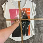 Rock & Republic Live Free '77 Studded Graphic Tee T Shirt M Medium Size medium approx measurements in photos. Overall good condition with some small splatter spots around one shoulder, might come out with treatment. Otherwise no other flaws/rips/stains etc.