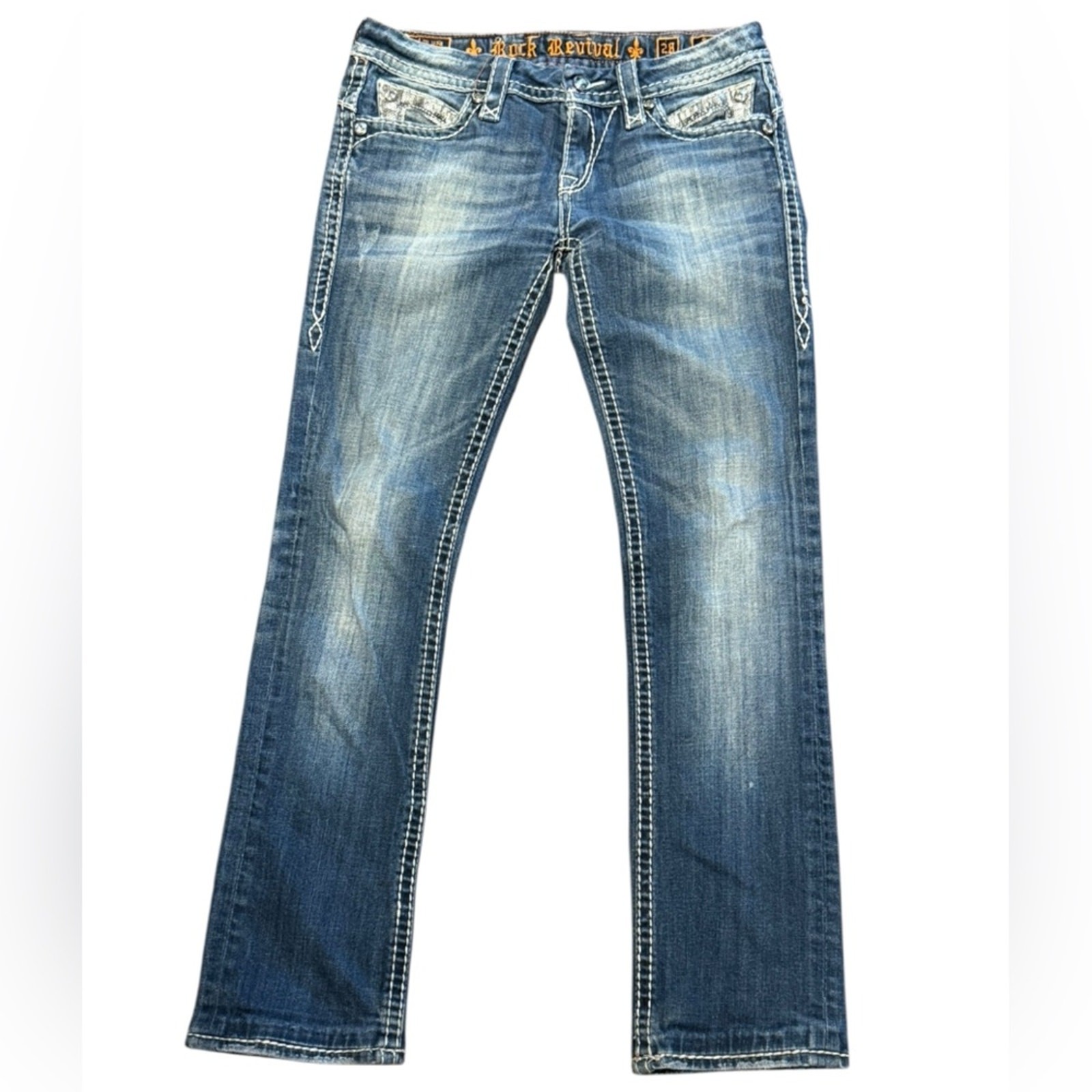 Rock Revival Sasha women's blue denim jeans are a stylish addition to any wardrobe. These jeans feature embellished pockets that add a touch of sparkle and uniqueness to your look. The classic blue denim provides a versatile base for various outfits, perfect for casual outings or dressing up for a night out. Key Features: - Brand: Rock Revival - Style: Sasha - Size: 28 x 28 - Color: Blue - Material: Denim - Embellished Pockets: Adds a unique, stylish touch - Condition: Excellent pre-owned condition These Rock Revival jeans are in excellent condition and ready to wear. Don't miss the opportunity to own a pair of fashionable and comfortable jeans that will surely turn heads. Grab them now and elevate your denim collection!