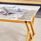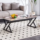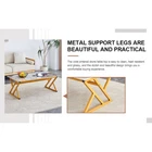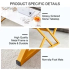 Contemporary Aesthetic Design: The white marble patterned rock tabletop, combined with golden metal legs, is not only stylish in design, but also stable and durable, with stronger load-bearing capacity, adding a touch of fashion to your living room. Durable and Sturdy: The sintered stone table top is hard and resistant to wear and tear, while the metal legs provide a stable structure with strong load-bearing capacity, ensuring the durability and longevity of the coffee table.Easy to Clean and Maintain: The smooth surface of the sintered stone material is not prone to staining, making daily cleaning simple and convenient, and the metal legs are also easy to wipe clean, with low maintenance costs. Space-saving: The X-shaped metal leg design is not only aesthetically pleasing but also space-efficient, suitable for living rooms of all sizes without occupying too much floor space.Multi-functionality: The coffee table is not only a practical piece of furniture for placing tea sets, magazines, and other items but also a decorative highlight in the living room due to its elegant appearance. Exquisite Craftsmanship: The sintered stone table top is crafted with advanced production techniques, ensuring the flatness and durability of the surface, while the finely processed golden metal legs showcase the exquisite craftsmanship of the furniture. Assembly instruction and assemble tools are included, easy to install.Most people can do in 10-15 minutes. Please note: All colors on our website are for reference only, actual product colors may vary a little bit, due to different color settings of every screen device.