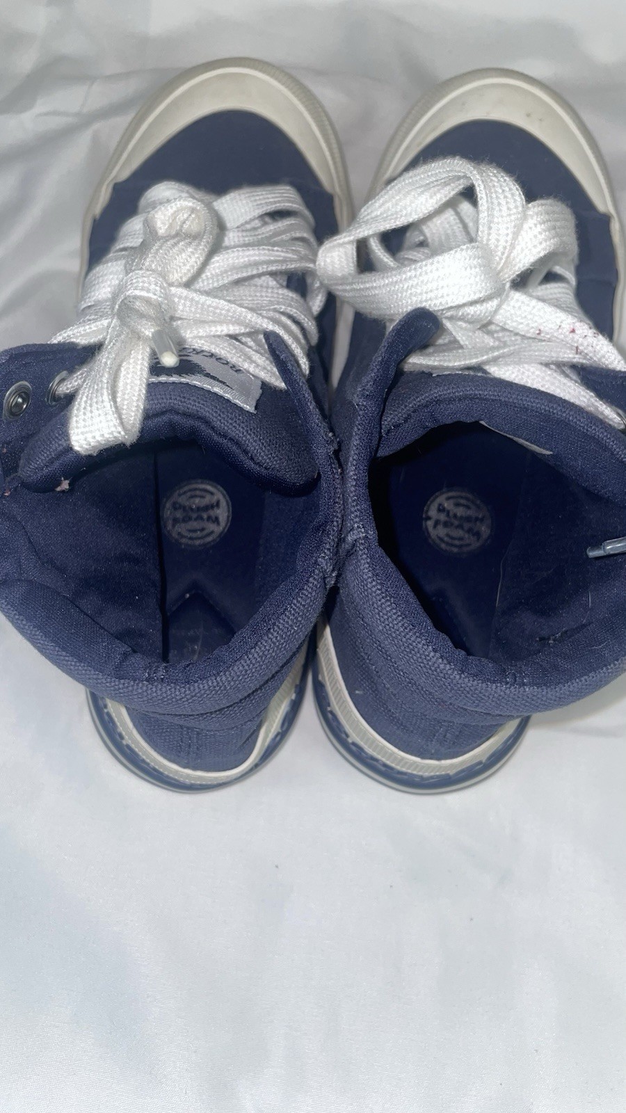 The Rocket Dog Jazzin Hi Canvas Navy White Cotton Ladies Shoes in size 7 are a stylish and comfortable pair of athletic shoes perfect for casual occasions. With a lace-up closure, rubber outsole, and lightweight design, these shoes offer adjustable comfort and breathability. The navy and white color scheme and Rocket Dog brand accents add a touch of classic retro style, while the cotton lining and synthetic insole provide a comfortable fit. Whether you're walking, at the beach, or engaging in sports activities, these shoes are a versatile and fashionable choice for the modern woman. Bottom of shoes do have signs of wear and tear