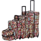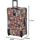 Carry-on Upright: 20"x 12. 5"x 7. 5" (with wheels) 24-inch Upright: 24"x16"x10" 28-inch Upright: 28"x18"x12" Tote: 14"x11"x5" Telescoping aluminum handle Full lining