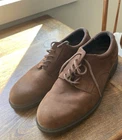 The Rockport Brown Sueded Leather Men's Lace Up Shoes in size 9M are a stylish and comfortable option for casual wear. Made from high-quality leather, these shoes feature a classic Oxford lace-up style with a durable leather outsole and black rubber soles. I excellent condition.