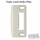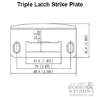 Multipoint lock strike plate used with Rockwell Triple Latch Width: 1-3/4 inch ( 45.8mm ) 1.803 Length: 3-1/2 inch ( 88.9mm) 3.500 Screw Holes: 2-7/8 inch (73mm) 2.875 Color / Finish: Stainless Steel US32D Adjustable: Yes, Slotted screw holes to move in or out Sold Each, No Screws