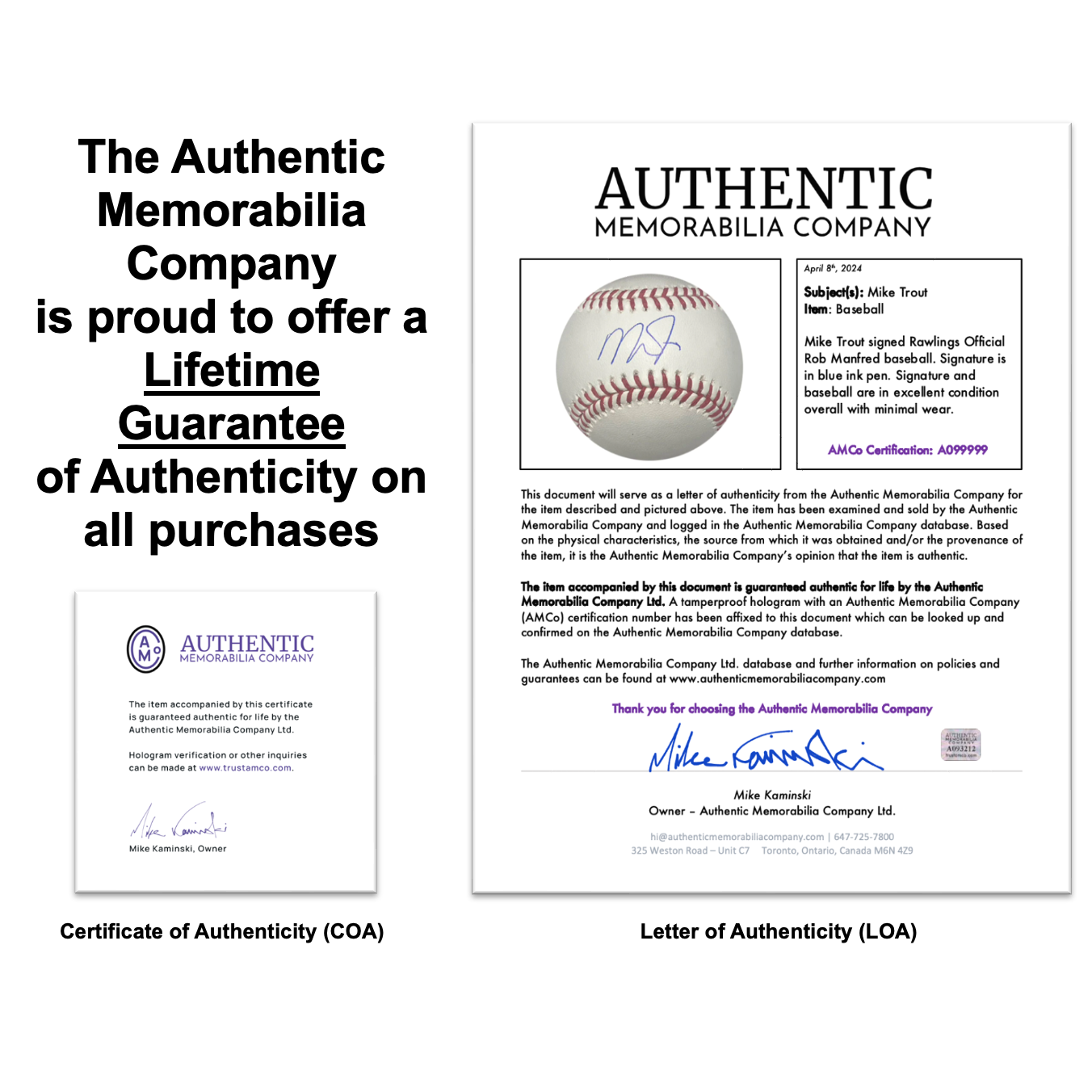 Authentic Memorabilia Company Ltd is a very friendly, accommodating, & generous seller. I have a diverse collection of signed photos, so adding unique pieces like these to my set really feels like I'm building a stronger foundation. My item arrived within a day, or 2, after i made my order, which is pretty awesome, and greatly appreciated. My item arrived in pristine condition, thankfully, as great care was put into the packaging. I highly recommend this eBayer for all. AAA+++! 🌟🌟🌟🌟🌟!!