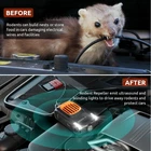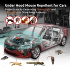 Mouse Repellent 【360° Wide Coverage】The mice repeller covers up to 300 square feet, providing protection for the entire car Repels a wide range of animals, including mice, rats, squirrels. 【2 Powered Ways Easy to Use】(1) Connected to the vehicle hood battery with the included DC cable. (2) Connected to the car interior cab USB port with the included USB cable. you can put this repellent device under hood, or in car interior cab / backseat, or both. 【Variable frequency Ultrasounds and LED strobe lights】The ultrasonic mouse repellent emits a combination of 18-36kHz ultrasounds and LED strobe lights causing them to become restless and eventually leave your property ,If you have a serious rodent infestation, place multiple repellers facing areas where the rats are active to maximize the deterrent effect. 【Automatic Car Status Detection 】 Automatically switches on/ off, the device will automatically detects the car's status, stops working when the device detects any movement such as vehicle start-up or intentional displacement. It activates after 5 minutes of the car being turned off, providing hassle-free operation and save battery life. 【Widely Use 】Designed for vehicles but also can be utilized almost everywhere such as garage, attic, basement, warehouse, barn, etc with the included USB cable.