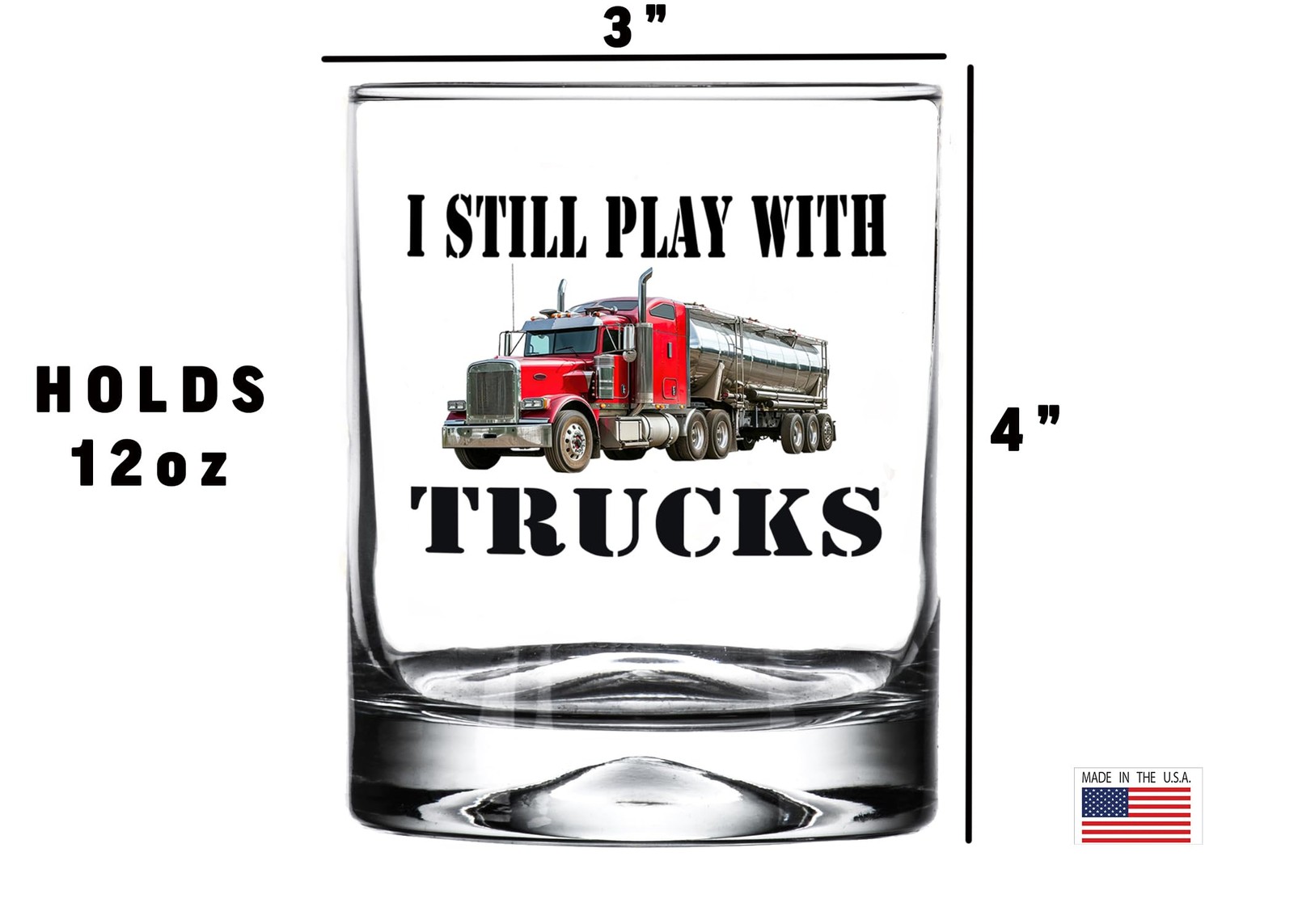 This High Quality Whiskey Glass would make a great gift. Him Her Men or Women Husband Wife Dad Mom Brother Sister Grandpa Perfect Holiday Gift or anyone who enjoys the occasional spirit. Perfect For Neat or on the rocks With Whisky Bourbon, Rum Tequila Scotch or just about anything Perfect Gift For Any Trucker Semi Truck Driver Still PLaying With Trucks Funny Sarcastic Joke