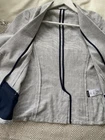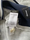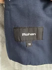 Rohan Navy Striped Linen Malay Jacket Blazer Casual Smart Summer Size 10 Measurements: Shoulder: 14 inches Pit to Pit: 18 inches Length: 24 inches Material: Performance Linen, a blend of linen and polyester for crease resistance and durability. Style: Single-breasted with a single-button closure, suitable for smart-casual wear. Pockets: Hand pockets and secure zipped pocket. There is also a pink variant available:) Please have a look at my other listings