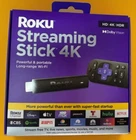 Qty. 1 Roku Streaming Stick 4k Features: Hides behind your TV: The stick design plugs right into your TV with a simple setup Super-fast startup: Start streaming channels like Disney+, HBO Max, Apple TV+, Netflix, Sling, and Hulu in a snap—just turn on your TV Long-range Wi-Fi: Enjoy fast, seamless TV streaming in any room with a strong Wi-Fi connection, now with up to 2x the speed No more juggling remotes: Power up your TV, adjust the volume, and control your Roku Streaming Stick with the Roku remote Voice search & control: Quickly search, play entertainment, and control your streaming device with the voice remote Breathtaking picture: Stream in 4K, Dolby Vision, and HDR10+ with sharp resolution and vivid color Watch what you love: Upgrade your streaming with a massive selection of free, live, and premium TV, including Roku Originals and 350+ Live TV channels for free on The Roku Channel Works with popular voice assistants: Enjoy easy voice control with Siri, Alexa, and Hey Google
