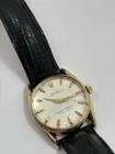 The Rolex 18k Yellow Gold Oyster Perpetual Bombay 1011 33mm is a luxurious and classic wristwatch from the 1970s. Featuring a non-numeric hour marks dial and self-winding mechanical movement, this timepiece exudes both sporty and formal styles. The 26 jewels movement ensures accuracy and reliability, while the 33mm case size and two-piece leather strap add a touch of elegance. This vintage Rolex is a timeless piece that is perfect for everyday wear or special occasions.