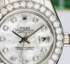 ROLEX - 18kt White Gold Pearlmaster - MOP Dial - Model 80299 Authentic Genuine Rolex ROLEX - genuine Factory Mother of Pearl Diamond Dial ROLEX - Ladies 18kt White Gold Pearlmaster ROLEX - Ladies 29mm Datejust Pearlmaster Timepiece Details Absolutely Stunning brilliant Rolex Mother of Pearl Diamond Dial! This is the 29mm size 18kt White Gold Rolex Ladies Datejust Pearlmaster model 80299: This is the style with the Rolex 18kt White Gold bracelet. This Rolex is in pristine condition...Priced to sell immediately! Comes with genuine Rolex presentation boxes, Rolex books, Rolex tag, Retail Appraisal And The Sant Blanc Three Year Warranty!...In pristine condition...The Perfect Gift! This Rolex is authentic and stunning. Unconditionally guaranteed to be authentic Rolex. Returns & exchanges accepted. Returns for refund are accepted. I have set the reserve well below the current value placed on this timepiece. SANT BLANC is a Swiss watch and timepiece specialist and not a Rolex dealer and have no affiliation with Rolex Watch USA. This Rolex timepiece is unconditionally guaranteed to be authentic. We are the sole warrantors of this timepiece. For questions please contact SANT BLANC. Authentic Rolex. It does not get any better than this! Pictures do not reveal the radiant beauty of this timepiece. This Rolex is authentic and stunning. Unconditionally guaranteed to be authentic Rolex. Returns & exchanges accepted. Returns for refund are accepted. I have set the reserve well below the current value placed on this timepiece. I am a Swiss Timepiece Specialist and not a Rolex dealer and have no affiliation with Rolex Watch USA. This Rolex timepiece is unconditionally guaranteed to be authentic. No factory warranty attached. We are the sole warrantors of this timepiece. For questions please contact SANT BLANC. Payment must be received within 5 days of the end of the auction Payment Information The winning bidder must contact us within 2 days and payment must be received within 5 days of the close of this auction. If you you are unable to complete payment within 5 days, you must contact us immediately by contact SANT BLANC through eBay through eBay SANT BLANC or contact Contact Our Office: SANT BLANC - BRANSON, MISSOURI - USA . Guarantee This article meets or exceeds the demanding standards and specifications set by Sant Blanc. This item is authentic and genuine in pristine condition, functions properly and accurately and comes with a full seven day return money back guaranty. We are not responsible for photography and description errors and omissions in this auction. Changes and modifications to this description may be made at any time, and for any reason with out notice. This auction may be ended at anytime without notice. - BRANSON, MISSOURI - USA Warranty SANT BLANC warranty is for a full three years. The dependable operation of this article for a period of three years from the date of purchase. Modification, tampering and abuse void warranty. SANT BLANC is the sole warrantor of this article, the factory warranty no longer apply. SANT BLANC Service & Warranty Division and The SANT BLANC Service Center, services and repairs Swiss Made watches and timepieces. The SANT BLANC Service and Warranty Division has over 30 years experience as Swiss Timepiece specialist factory trained and certified "Watchmaker". The credentials include AWCI CW21 certified as one of the world's leading watchmaker. Our watchmaker is a certified graduate watchmaker with continuing Swiss Watch education including training from the Rolex Dallas Training Facility. Sant Blanc is dedicated to setting the highest standards in Swiss Timepiece excellence. We have a complete Swiss watch service center. We do our own inhouse photography, and research. Please contact us if we can be of service to you. Shipping Information FedEx/UPS shipping is included.. This item is professionally packaged and shipped fully insured, adult signature required at delivery. We ship via FedEx, UPS, Brinks, Private Courier and United States Express Mail. Items are typically shipped within two business days of receipt of payment. You will be notified when your item has been shipped. We are not responsible for shipping and/or delivery delays resulting from acts of nature, theft, strikes, or shipping company errors affecting the shipment and/or delivery. This shipment is fully insured.. We ship world-wide fully insured by: UPS, FEDEX, BRINKS, Private Courier, and United States Express Mail. ATTENTION International Customers. NOTICE: International shipments are shipped at the customers risk to shipping delays, international and national regulations, Customs fees, taxation, and damage due to and/or resulting from shipping. We are not responsible for shipping delays, damage, theft, acts of nature affecting the shipment, Customs duties, fees, taxation or regulatory import restrictions . This disclaimer applies only to shipments outside the United States, and does not apply to shipments within the United States. Arrangements must be made for delivery to PO boxes. Provide a physical address, and contact contact SANT BLANC through eBay through eBay number with your payment. If payment is made by PayPal, and your shipping address is different than your confirmed address in PayPal, you must contact us directly to let us know of the requested change. Address change approval will be sent to you, otherwise this item will be sent to your confirmed PayPal address. About Sant Blanc SANT BLANC is a Swiss Timepiece Specialist Company, located in Branson Missouri USA. The Sant Blanc Service Center is a state of the art service facility, servicing all Swiss Made watches and is open to our customers by appointment. The Sant Blanc Sale Division specializes in offering the finest Swiss Made Timepieces. The Sant Blanc Consignment Division sells watches on behalf of our customers. Thank you for your interest SANT BLANC Notice: SANT BLANC is not an official nor an authorized dealer for any 