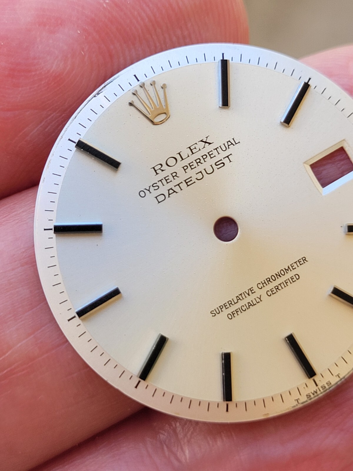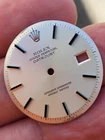 100% original Rolex Silver color and very Rare Lacquer strip hour markers in very good used condition with very minor surface bubbling almost invisible for all steel models non quick set 1601 or 1603 man's full size 36 mm
