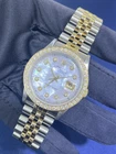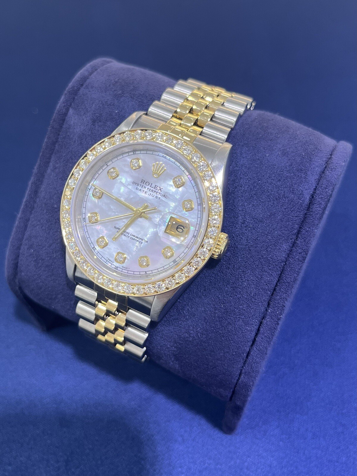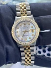 Rolex DateJust 36mm MOP 2ct Diamond Dial Bezel 18K Gold Steel Jubilee Watch 16233 Condition: Pre-owned - The watch has been professionally polished/serviced and looks incredible! Has signs of light wear like small scratches (please look at all the photos). Custom white mother of pearl diamond dial & custom yellow gold 2.00ct diamond bezel. Includes: Watch Only Wrist Size: 7.25" inch (approx.) Year: 1997-1998 (U Serial) Certified Appraisal 3 Year Service Warranty from our jewelry store Return Policy: No Refunds. Shipping: We use Fedex Priority Overnight with signature required upon delivery. Plus Platinum Jewelry Boca Raton, FL