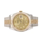 Powered by Frooition Visit the Time Piece Vault eBay Store to View All Items About Us Feedback Contact Us GMT-Master II Other Submariner Day-Date Datejust Rolex Datejust 116233 18k Gold/Steel 36mm-Champagne Diamond Dial-Diamond Bezel Rolex Datejust 116233 18k Gold/Steel 36mm-Champagne Diamond Dial-Diamond Bezel Item Description Introducing an authentic Rolex Men's Datejust watch featuring a Rolex 18K yellow gold and stainless steel jubilee bracelet, custom champagne diamond dial, and 18K yellow gold diamond bezel. This genuine pre-owned timepiece is impeccably maintained, assuring precise timekeeping, having undergone thorough servicing, polishing, and testing before being offered for sale. With a 36mm case diameter, this Rolex Datejust 116233 is designed for men/unisex and includes a sapphire crystal, Rolex Self-Winding Automatic Quickset 3135 Movement, and a Rolex Two-Tone 18K Yellow Gold and Stainless Steel Jubilee Bracelet with a hidden clasp fitting wrists up to 7.5 inches (additional links available for purchase). Your purchase includes a Rolex box, a certificate of authenticity, and the security of a 2-year warranty coverage from Timepiece Vault. Enhance your collection with the Rolex Datejust , a blend of luxury and history that makes a statement with every passing moment. Specs: Brand: Rolex Country of Manufacture: Switzerland Model: Datejust Reference: 116233 Condition: Pre-Owned Box: YES Paper: NO Year: 2007-2012 Style: Luxury Gender: Men Case & Dial Case Size: 36mm Case Material: Stainless Steel Caseback: Screwback Dial: Non-Rolex Custom Champagne Diamond Dial Bezel: Non-Rolex Custom 18k Yellow Gold Diamond Bezel Function Movement: Genuine Rolex Automatic Quickset 3135 Movement Complication: Time, Date Strap/ Bracelet Material: 18k Yellow Gold & Stainless Steel Band Color: Gold & Silver Bracelet Type: Jubilee Buckle Type: Hidden Clasp Bracelet Size: 7.5 inches About Us About Us Payment Shipping Returns About Us With over 15 years of experience and numerous satisfied customers, we offer the largest selection of Rolex watches for sale, alongside other prestigious brands. We are your ultimate destination to buy, sell, and trade pre-owned Rolex watches for both men and women. Our luxury pre-owned watch store is known for outstanding customer service and competitive pricing. Every item in our listing is available for free overnight shipping. To ensure authenticity, our professional watchmakers carefully verify each watch, so you can have complete confidence in our legitimacy. DISCLAIMER : Timepiece Vault Inc. is an independent business specializing in the sale of pre-owned and brand-new watches. We are not affiliated with Rolex, USA, or any other watch brand we sell. Rolex and other brands are not obligated to honor the warranty or provide service on watches sold by third-party dealers such as Timepiece Vault Inc. All other brands are registered trademarks of their respective owners and are not affiliated with Timepiece Vault Inc. Payment Payment We accept all forms of payment through the eBay payment system. EBay accepts various payment methods including credit cards, debit cards, Apple Pay, Google Pay, Venmo, and PayPal. For detailed information on accepted payment methods, please refer to the Shipping and Payments section of the listing. Shipping Shipping Orders are typically shipped within 2-3 working days from the time the order is placed. Once the order is placed, our watchmakers complete a final inspection before shipping it to the customer. For items undergoing the eBay authentication process: Once you purchase an item eligible for eBay's Authenticity Guarantee, we will expedite the shipment to an eBay Authentication Facility. There, experts will carefully examine its authenticity and verify the listing details. After confirmation, the item will be securely sent to you via 2-day shipping with a required signature. If authenticity cannot be confirmed or the item doesn't match the description, it will be returned to the seller, and you will receive a full refund. For items not undergoing the eBay authentication process: With years of experience, Timepiece Vault ensures the safest and most reliable shipping for high-value items. We package your watch discreetly using multiple layers and send it overnight to minimize transit time. Every step of the journey is fully insured. We provide this level of meticulous care at no additional cost. Please note, the purchase price does not include import duties and taxes. Buyers are responsible for all duties and taxes Returns Returns Timepiece Vault offers a 14-day return window from the date of delivery. Watches must be returned in the exact condition as received, including all original packaging, tags, and accessories. Our return process is designed to be straightforward and customer-friendly. We provide a free return shipping label for your convenience, fully insured for peace of mind. Please note that if any of the following actions are carried out by Timepiece Vault, the return and potential refund will not be possible: Removing the security tag Missing accessories Making modifications Performing alterations Causing damage Resizing Showing signs of "Wear and Tear" If Timepiece Vault accepts a return that has been voided due to these actions, any costs associated with the return will be subtracted from the refund. This includes expenses related to shipping, repairs, services, and replacement parts needed due to the return of the item. More Items! View more great items ROLEX DATEJUST 16233 GOLD & STEEL 36MM WATCH WHITE MOP 18K FLUTED BEZEL B+P $7,935.00 ROLEX DATEJUST 36MM OYSTER STEEL WATCH PINK MOP DIAMOND DIAL DIAMOND BEZEL-B&P $8,387.40 ROLEX MENS DATEJUST 36MM STEEL WATCH PINK MOP DIAMOND DIAL 18K FLUTED BEZEL-B&P $7,337.40 Rolex Datejust 116233 18k Gold & Steel 36mm Black MOP Diamond Dial Fluted Bezel $10,650.00 Shop Our Categories Men's Women's Two Tone Steel Gold Request Now Contact Us Home View Feedback Contact Seller Visit se