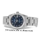 HOME ABOUT US CUSTOMER FEEDBACK CONTACT US Visit the watch chest ebay store to view all items Rolex Datejust 31, Blue Roman Dial, Steel, 78240 Rolex Datejust 31, Blue Roman Dial, Steel, 78240 Item Description SKU 1548 Year: ~2004 Condition: Excellent - Comes With: Watch Chest Certificate of Authenticity,Watch Chest Appraisal, Watch Chest 2-Year Warranty Photography props used in lifestyle photos not included. About Us About Us Payment Shipping Returns Warranty About Us Founded in 2002 by Chris Wiley, Watch Chest has the distinction of being one of the world's first online-exclusive watch atelier. As a small family-owned and operated business, our mission is to personally help you build a watch collection you love. We are guided by core values: Exceptional Client Experiences: Providing personal service for every client. Authenticity & Transparency: Ensuring every timepiece meets strict authenticity standards and every transaction is transparent. Traidition & Craftsmanship: Practicing the timeless art of watchmaking with excellence. Sustainability & Preservation: Sustainably extending the lifespan of watches while preserving their unique history. Payment Payment Watch Chest strives to offer flexibility to our customers via a wide array of payment options. Accepted Payment Methods Include: Credit Card - All major credit cards accepted Trades - Please contact or call to discuss trades Shipping Shipping Orders usually ship ~2-3 working days after the order is placed. If an item goes through the eBay authentication process: After the purchase of an Authenticity Guarantee Eligible Item on eBay, we will ship (expedited and insured) the item to an eBay Authentication Facility for them to carefully inspect the item's authenticity and confirm the item?s listing details. Once the item's authenticity is confirmed by the Authentication Facility, the item is securely shipped to the buyer via signature required 2 day shipping. If the item?s authenticity cannot be verified or the item is not as described, the item is returned to the seller and a refund is issued. If an item does not go through eBay authentication process: With years of experience, Watch Chest provides the safest, most reliable way to ship a high-value item. Extra care is taken as we box your watch in inconspicuous multi-layer packaging and ship overnight to minimize the amount of time between leaving our hands to when it arrives at your door ? fully-insured every step of the way. We believe this attention to detail should be expected. And that it should be free. Returns Returns Watch Chest provides a refund guarantee for any reason within the first 14 days of delivery with the security tag still attached to the article being returned. A return shipping fee applies to all returns. The article must be returned in the same condition received, with all accessories accompanying the article. This can include books, box, etc. All accessories with the article must be returned intact and undamaged. New/Never-worn watches must also be returned with all original factory seals, tags, etc. intact. An 18% restocking fee may also apply to new/never-worn watches. All return fees will be deducted from the refund. Any of these actions not performed by Watch Chest will void a return and/or refund: Removal of security tag Missing accessories Modifications Alterations Damage Sizing "Wear and Tear" If Watch Chest accepts a voided return, any costs associated with the return will be deducted from the refund. This includes shipping costs, repairs, service, and replacement of parts associated with the article's return. Warranty Warranty Please see our store page for full detail of our warranty policies here . Authenticity & Guarantees Certified Authentic We ensure every timepieces meets strict authenticity standards. We do not support the sale of aftermarket watches. Money-Back Guarantee Buy it, try it, and if you don't love it, return the watch within fourteen (14) days for a different watch or refund. Buyer pays return shipping. We Only Sell the Best We hand-select only the top watches, each of which passes a strict multi-point inspection. We only sell what we'd buy and wear ourselves. Your Personal Watch Dealer With over 22 years in business, owner Chris Wiley is here to help you build a watch collection you love. Shop Rolex Models Air-King Datejust Day-Date Daytona Deepsea Explorer GMT-Master II Lady-Datejust Milgauss Oyster Perpetual Pearlmaster Sea-Dweller Sky-Dweller Submariner Yacht-Master FIND A WATCH Not in stock, no problem. We'll find the watch of your dreams. REQUEST NOW SERVICE YOUR WATCH Get your watch serviced by our master watchmakers. SERVICE NOW Let's Stay in Touch! Add us to your eBay saved sellers for news, updates and promotions. STORE HOME CONTACT US Home About Us Customer Feedback Contact Us