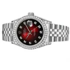 Rolex Datejust 31 mm Red Vignette Diamond Dial Stainless Steel Ladies Watch Brand: Rolex Series: Datejust Model: 68274 Case Diameter: 31 mm Bracelet: Jubilee band; stainless steel Bezel: Custom set diamond Dial: Custom set red vignette diamond dial Carat Weight: 2.42 carats in total diamond weight The sale includes a jewelry watch box and an appraisal certificate which states the watch's credentials Attached to the appraisal certificate is our 1 year mechanical warranty and lifetime diamond replacement warranty Diamonds are set aftermarket not originally by Rolex
