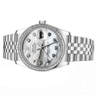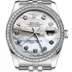 Rolex Datejust 31 mm White Mother of Pearl Dial Diamond Bezel Steel Ladies Watch Brand: Rolex Series: Datejust Model: 68274 Case Diameter: 31 mm Bracelet: Jubilee band; stainless steel Bezel: Custom Diamond Set Dial: Custom set white mother of pearl diamond dial Carat Weight: 1.46 carats in total diamond weight The sale includes a jewelry watch box and an appraisal certificate which states the watch's credentials Attached to the appraisal certificate is our 1 year mechanical warranty and lifetime diamond replacement warranty Diamonds are set aftermarket not originally by Rolex