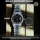 24/7 Customer Service Authenticity Guaranteed Trusted Seller ROLEX DATEJUST 36MM 16030 STEEL BLACK DIAMOND DIAL JUBILEE MENS WATCH ITEM SPECIFICS: Model Name: Datejust Movement: Automatic Caliber No.: 3035 Watch Material: Stainless Steel CASE & BEZEL Bezel: Original Rolex Bezel Style: Engine-Turned Bezel Material: Stainless Steel Crystal: Acrylic Crystal Case Diameter: 36mm DIAL Dial: Custom/Aftermarket Dial Color: Black Numerical Style: Genuine Diamond Hour Marker BAND Band Attachment Type: Original Rolex Jubilee Bracelet Band Material: Stainless Steel Buckle Style: Double Deployant Buckle Buckle Material: Stainless Steel Measurements: Fits a wrist size of 7.5" BOX: Presentation Box from TKV Watches Inc. *Original Rolex Box is Available for Purchase. GUARANTEE: Comes with Certificate of Appraisal. Shipping Warranty Free Shipping within the U.S We have 2 days handling time from order date unless other wise stated. We use FedEx or UPS 2-day. We accommodate overnight shipping with extra fee. Please message us. INTERNATIONAL SHIPPING AND REPAIRS: Buyer is responsible for custom duties and taxes. If buyer refuses to pay the custom duties and taxes, and the watch will be returned to us by the courier, shipping fee will be deducted from the total refund amount. We only cover the warranty for movement and the buyer is responsible for shipping to and from TKV service center. Our watches come with a 2-year warranty. TKV Watches warranty only covers the service of the movement and does not cover wear and tear, loss, theft, tampering, mistreatment or modification through the addition of subtraction of parts or accessories not supplied by TKV Watches. All of our watches have been serviced by our in-house certified watch maker, and each watch passes rigorous exams including water pressure test and time-keeping accuracy. This watch currently meets expected time-keeping standards. We offer 30 Days return for most of our items as long as the item was not used / damaged. If our return tag / watch tag was removed an automatic 10% restocking fee will be charged. UNWORN / NEW watches are final sale. Returns WE GUARANTEE THE AUTHENTICITY OF THE BAND (unless specified), CASE, AND MOVEMENT OF ALL OUR WATCHES. SINCE THIS IS A PRE-OWNED WATCH, THE BANDS OF OUR WATCHES WILL SHOW SOME STRETCH, BUT WE GUARANTEE THE AUTHENTICITY, AND NONE OF OUR BANDS HAVE BEEN REFINISHED DISCLAIMER: TKV WATCHES Inc. is an independent watch dealer and is not sponsored by, or affillated with Rolex USA or any of its subsidiaries. TKV WATCHES Inc. sells preowned Rolex watches and provides in-house warranty on all watch purchases. Rolex, Rolex USA and Rolex S.A are under no obligation to warranty or service watches, sold by TKV WATCHES Inc. The Following Rolex models are all registered trademarks of the Rolex Corporation (Rolex USA, Rolex SA) Rolex Datejust, Rolex Day-Date President, Submariner, Explorer, Sea Dweller, GMT and etc. . All Brands including but not limited to Cartier, Audemars Piguet, Patek Philippe, Breitling and Omega are trademarks of their respective owner/share holders. We are not affilated in any shape or form with any of the brands we carry. 2 Years warranty Free Shipping Return Accepted ITEM SPECIFICS: Model Name: Datejust Movement: Automatic Caliber No.: 3035 Watch Material: Stainless Steel CASE & BEZEL Bezel: Original Rolex Bezel Style: Engine-Turned Bezel Material: Stainless Steel Crystal: Acrylic Crystal Case Diameter: 36mm DIAL Dial: Custom/Aftermarket Dial Color: Black Numerical Style: Genuine Diamond Hour Marker BAND Band Attachment Type: Original Rolex Jubilee Bracelet Band Material: Stainless Steel Buckle Style: Double Deployant Buckle Buckle Material: Stainless Steel Measurements: Fits a wrist size of 7.5" BOX: Presentation Box from TKV Watches Inc. *Original Rolex Box is Available for Purchase. GUARANTEE: Comes with Certificate of Appraisal. 24/7 Customer Service Authenticity Guaranteed ROLEX DATEJUST 36MM 16030 STEEL BLACK DIAMOND DIAL JUBILEE MENS WATCH ITEM SPECIFICS: Model Name: Datejust Movement: Automatic Caliber No.: 3035 Watch Material: Stainless Steel CASE & BEZEL Bezel: Original Rolex Bezel Style: Engine-Turned Bezel Material: Stainless Steel Crystal: Acrylic Crystal Case Diameter: 36mm DIAL Dial: Custom/Aftermarket Dial Color: Black Numerical Style: Genuine Diamond Hour Marker BAND Band Attachment Type: Original Rolex Jubilee Bracelet Band Material: Stainless Steel Buckle Style: Double Deployant Buckle Buckle Material: Stainless Steel Measurements: Fits a wrist size of 7.5" BOX: Presentation Box from TKV Watches Inc. *Original Rolex Box is Available for Purchase. GUARANTEE: Comes with Certificate of Appraisal. Shipping Free Shipping within the U.S We have 2 days handling time from order date unless other wise stated. We use FedEx or UPS 2-day. We accommodate overnight shipping with extra fee. Please message us. INTERNATIONAL SHIPPING AND REPAIRS: Buyer is responsible for custom duties and taxes. If buyer refuses to pay the custom duties and taxes, and the watch will be returned to us by the courier, shipping fee will be deducted from the total refund amount. We only cover the warranty for movement and the buyer is responsible for shipping to and from TKV service center. Warranty Our watches come with a 2-year warranty. TKV Watches warranty only covers the service of the movement and does not cover wear and tear, loss, theft, tampering, mistreatment or modification through the addition of subtraction of parts or accessories not supplied by TKV Watches. All of our watches have been serviced by our in-house certified watch maker, and each watch passes rigorous exams including water pressure test and time-keeping accuracy. This watch currently meets expected time-keeping standards. We offer 30 Days return for most of our items as long as the item was not used / damaged. If our return tag / watch tag was removed an automatic 10% restocking fee will be charged. UNWORN / NEW watches are final sale. Re