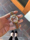 This is a classic Rolex Datejust 36mm in two-tone stainless steel and 18K yellow gold. The timepiece features a stunning silver dial adorned with factory-set diamond hour markers, adding elegance to its timeless design. The iconic fluted bezel in 18K yellow gold enhances its luxury appeal. The Jubilee bracelet, crafted in stainless steel and 18K yellow gold, offers a comfortable fit and a polished look. The watch is equipped with a sapphire crystal featuring a Cyclops lens for easy date reading. Powered by a reliable Rolex automatic movement, it ensures precision and longevity. Features: Model: Rolex Datejust 16233 Year: 2005 (Serial F699878) Case Size: 36mm Case Material: Stainless Steel with 18K Yellow Gold Fluted Bezel Dial: Silver with Factory Diamond Hour Markers Bracelet: Jubilee, Stainless Steel & 18K Yellow Gold Crystal: Scratch-Resistant Sapphire with Cyclops Lens Movement: Rolex Automatic Self-Winding Functions: Hours, Minutes, Seconds, Date Additional Details: Condition: Excellent pre-owned condition, recently polished. Includes: Watch only (no box or papers). Serial Number: F699878, dating to 2005.
