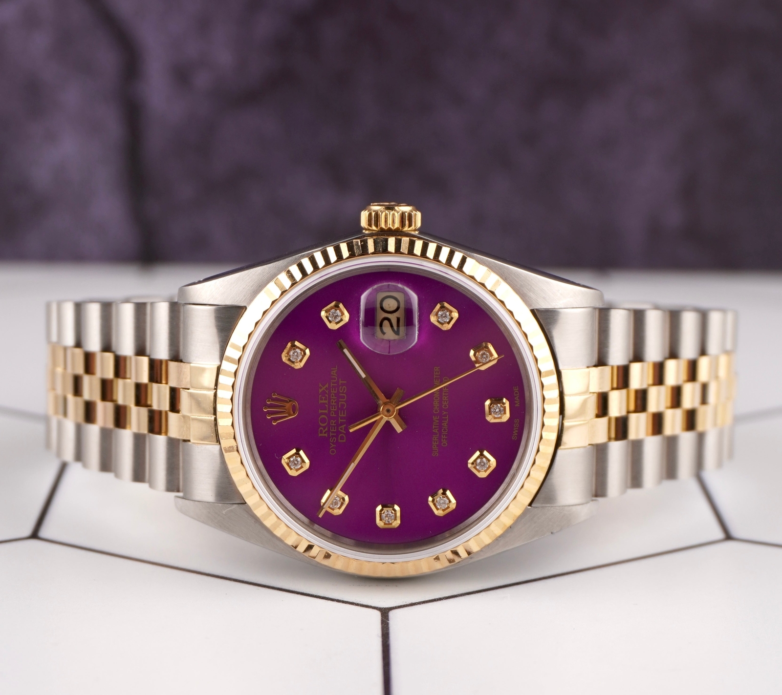 Home About Us Feedback View All Listings Contact Us Menu Bezels Bands Rolex Audemars PIguet Cartier Breitling Watches Audemars Piguet Bell & Ross Breitling Bvlgari Cartier Franck Muller HUBLOT ICE TIME IWC Jacob & Co. Jaeger-Le Coultre MAURICE LACROIX Omega Panerai PATEK PHILIPPE PIAGET Rolex Ulysse Nardin ZENITH Girard-Perregaux Vacheron Constantin Dials Rolex Breitling Cartier Audemars Piguet Patek Phillip Franck Muller PIAGET Jewelry Various Parts Single Links Crystals Crowns Hands Auctions Rolex Datejust 36mm 18k YG & Steel Fluted Purple Diamond Dial Watch 16013 Type Wristwatch Brand Rolex Model Datejust Dial Color Purple Material 18k Yellow Gold, Stainless Steel Case Size 36 mm Reference Number 16013 Water Resistance Water Resistant Gender Mens Year Manufactured 1980-1989 Country/Region Of Manufacture Switzerland Condition Pre-owned Watch Description Rolex Datejust 36 mm ALL ORIGINAL WATCH! CUSTOM DIAMOND DIAL! READY TO WEAR! Reference Number 16013 Condition Pre-owned Year 1980-1989 Material Stainless Steel, Yellow Gold With Original Box No With Papers No Dial Color Purple Max Wrist Size 7.1-7.25 in Payments Shipping Returns Payments FAST & SECURE payment through eBay verified payment processing. Sales Tax is collected by eBay based on the shipping address zip code. Shipping Domestic: FREE SHIPPING ON ALL US ORDERS! Shipping insurance included on all items over $750. Once payment is received, all orders are processed and shipped within one business day. Shipments within the USA will be received within 1-5 business days, the delivery time for domestic shipping varies depending on the service selected, please check the listing you are purchasing to see the shipping method. Any orders shipped within the United States that are over $750 will require a signature upon receipt. International: Shipping for all INTERNATIONAL orders is calculated at checkout. Orders will require a signature upon receipt. Shipments crossing international borders are subject to customs regulations and duties, Buyers are responsible for all duties and taxes, import duties, taxes and charges are not included in the item price or shipping charges. Please check with your country's customs office to determine what these additional costs will be prior to bidding/buying. Returns We offer a 30-day 100% money back guarantee. Please do not use or alter the item in any way as this will void your return. Refunds will be processed within 2-3 business days upon receipt of the returned item. If you have any questions please don't hesitate to contact us as we are here to help you throughout your online shopping experience with us! International buyers may return their purchase; however, any return shipping costs, customs fees, and taxes will be the buyer's responsibility. All other aspects of the return policy listed above still apply for International returns. Our Seller Ratings 826 Item as described 843 Communication 866 Shipping time 867 Shipping charges Our Recent Feedback Swiss Ice (3450 total) Clean dial...thanks 2024-01-18 Thanks very much for great item AAAAAAAAA++++++++++ 2024-01-17 Fast overseas shipping. Great seller and great products 2024-01-17 Disclaimer: We are in no way affiliated with Rolex, Audemars Piguet, Patek Philippe, Cartier, Bell & Ross, Breitling, Piaget, Panerai, Jaeger-LeCoultre, Jacob & Co, Ulysse Nardin, Frank Muller, Omega, IWC, Casio, Gucci, Vacheron Constantin, Zenith, Girard Perregaux, Apple Inc or any other registered watch brand. Nor do we claim to be one of their official authorized dealers Home Feedback Contact Us Copyright © 2024 Swiss Ice. All rights reserved. eBay Store Design by Carbon Reprographics