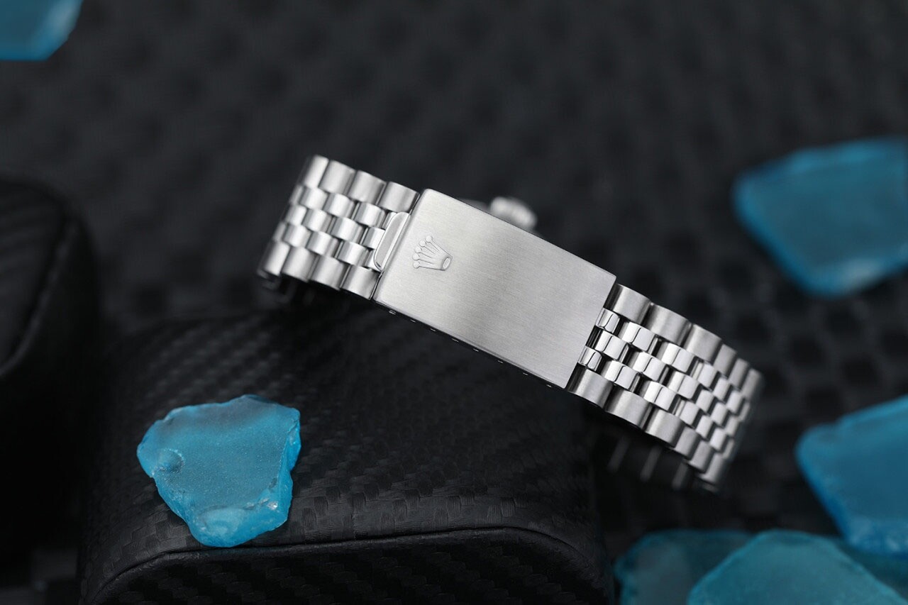 Rolex Datejust 36 mm Blue Index Dial Stainless Steel Watch Diamond Bezel Brand: Rolex Series: Datejust Model: 16014 Case Diameter: 36 mm Bracelet: Jubilee band; stainless steel Bezel: Custom Diamond Set Dial: Factory Blue Carat Weight: 2.66 carats in total diamond weight The sale includes a jewelry watch box and an appraisal certificate which states the watch's credentials Attached to the appraisal certificate is our 1 year mechanical warranty and lifetime diamond replacement warranty Diamonds are set aftermarket not originally by Rolex
