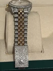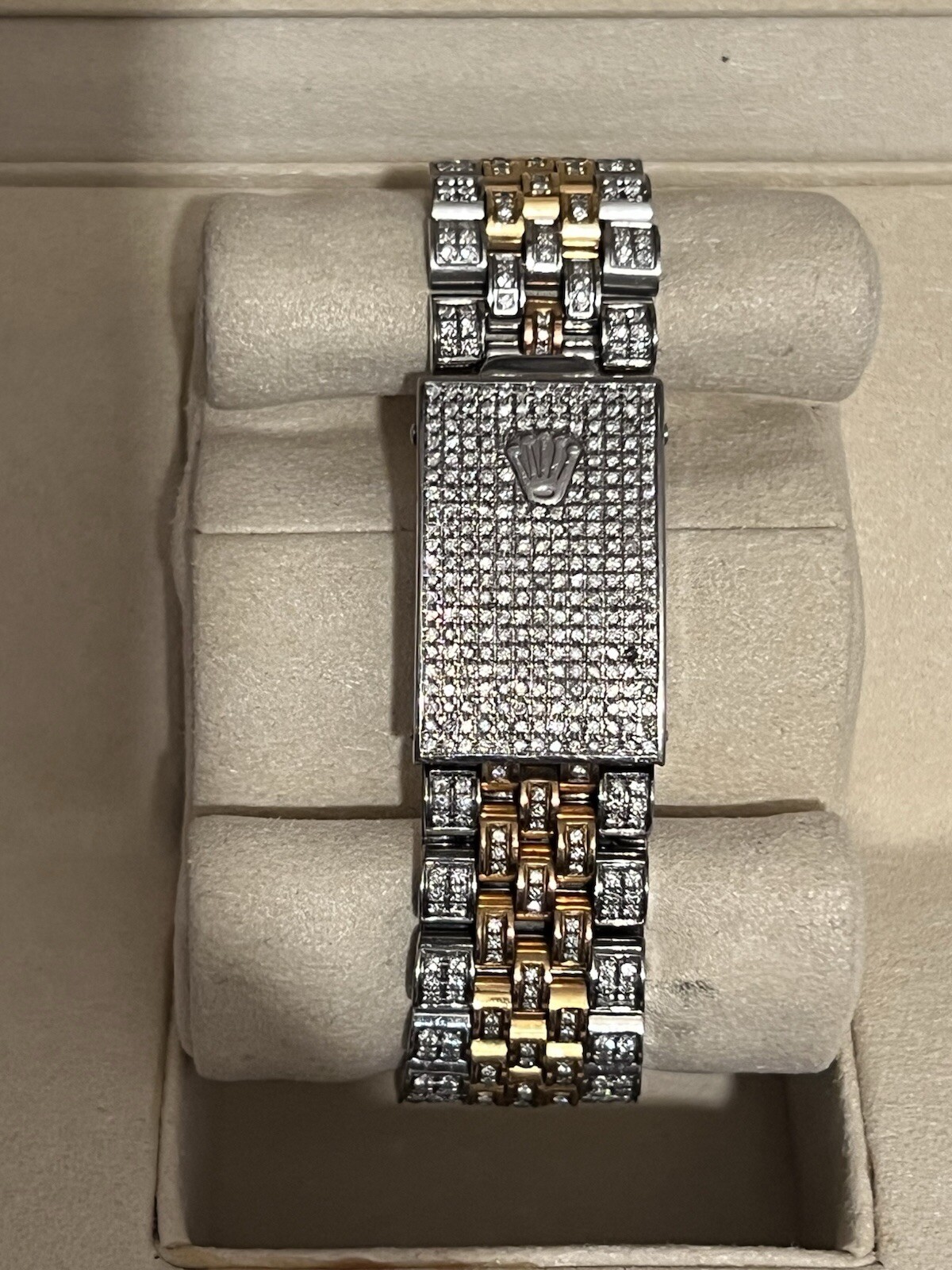 Authentic Full bust down with Natural mine Diamonds 13-14cts of diamonds Elevate your style with this stunning Rolex Datejust wristwatch. Crafted with a 36mm silver case and a luxurious jubilee band in a stunning combination of gold and silver, this watch is the epitome of luxury. The white dial is adorned with diamond markers and a diamond bezel, adding a touch of elegance to any look. This watch features automatic movement and is customized to your liking. It comes with its original box and packaging, making it a valuable addition to any collection. Indulge in the glamour and sophistication of this Rolex Datejust wristwatch.