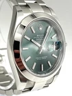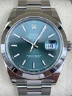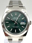 Date Just 41mm Smooth Wimbledon Dial Oyster 126300 Unworn 2021 Date Just 41mm Smooth Mint Green Dial Oyster Bracelet 126300 Pre-Owned 2025 This is a pre-owned watch in overall very good condition. The watch comes with everything seen in the first photo including the original box and papers. There are some light marks on the bezel, bracelet, case, case back, and clasp from wear. None of the marks are deep in nature. The crystal appears to be free of any major imperfections warranting replacement. We did not polish the watch but, it is possible that the watch was previously, professionally, touched up. The bracelet comes fully linked with all of the links that come standard on the model already on the bracelet. The bracelet will fit an approximately 7.5" wrist size. If additional links are needed, they are available to be sourced for an additional cost. The service history of the watch is unknown. However, the watch does not need a service. The purchase comes with a one year, in house, limited warranty on the movement of the watch. The warranty does not cover abuse, cosmetic damage, or water damage. In order to protect the identity of our suppliers, we do not disclose any information regarding the warranty card other than the reference number and the year of purchase. We will not, under any circumstances, give the serial number or the exact date of purchase on the warranty card prior to the receipt of the watch. We will allocate the newest date that we have in stock at the time of payment confirmation by eBay. We have the "Make an Offer" function turned on for all of our listings. If you wish to make an offer, please utilize the "Make an Offer" function on the listing. Please do not message us your offer in the chat. Out of principle, we will not negotiate against ourselves. If you ask us what the best price is without making us an offer, do not expect a discount on the listed price. While the option may be available, we may not be accepting offers on certain pieces. We price down many of our most popular models as much as we possibly can to be competitive within the market. That being said, reasonable offers will always be considered when we have room to provide further discounts . Watch Specifications Brand: Rolex Model: Date Just Reference Number: 126300 Serial Number: Scrambled Metal: Stainless Steel Case Size: 41mm Dial: Mint Green Dial Bezel: Smooth Bracelet: Stainless Steel Oyster Box and Papers: Yes Condition: Pre-Owned About Us W atch Limit has been the premier online retailer of luxury watches since 1997, specializing in delivering competitive pricing and exceptional service. We are passionate about our watches, dealing in many high end brands such as Rolex, Patek Philippe, Audemars Piguet, Richard Mille, Hublot, Cartier, Omega, Breitling and more. Our Mission is to deliver the best value on the market. We guarantee all of our watches to be 100% Authentic and fully functional, backed by our 1-year Limited Warranty. We are a fully online operation. Unfortunately, even if you are located in New York, you cannot come and see the watch in person. We do not allow visitors into our office. All transactions must occur completely online and shipped to you. We are also an aggressive buyer for your pre-owned or unworn timepieces. If you are looking to sell or trade in your timepiece, please send us the relevant details pertaining to the watch and the amount you wish to receive for it. Please note, we will not give you an offer on your watch if you do not tell us how much you are looking to get for it. Our offers are subject to change at any point . Contact Us We can be contacted at any time through eBay messages if you have any questions, comments or product requests. We will respond to you within 24 hours and do our best to help you out! We encourage our customers to contact us with any questions or concerns! We'd like to be sure you are completely satisfied with your purchase. Return Policy W e accept returns for a full refund within fourteen (14) days of purchase if the watch is received not as described. The watch must be returned in the exact same condition that it was received and with all of the contents that arrived in the package. We do not accept returns for change of mind, buyer's remorse, or simply not liking the way it looks. If the watch is not returned within fourteen (14) days, if contents are missing, or if it was returned for any reason other than an inaccurate item description, there is a 15% restocking fee . Shipping Y our package will be shipped to the eBay Authentication Team for authentication via FedEx Insured Overnight shipping roughly 48-72 business hours from the point of payment confirmation by eBay .