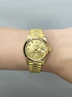 Rolex Datejust 69178 Diamond Dial Ladies Watch Box Papers TOP BRANDS Rolex Audemars Piguet Omega Patek Philippe Cartier Breitling All Rolex Oyster Perpetual Datejust 69178 Ladies Watch. 26mm 18K yellow gold case with a fluted bezel. Champagne dial with gold hands and original factory diamond set hour markers. Minute markers on the outer dial. Date display at the 3 o'clock position. 18K yellow gold President bracelet with 18K rose gold hidden fold over clasp. Will fit up to 6-Inch wrist. Sapphire crystal. 18K yellow gold case back. Automatic self-winding movement. This watch comes with original Box and Papers. This watch is backed by our two year warranty. Phigora Guarantee Two Years Warranty Free Shipping & Returns Specifications SKU R69178CHDP95-1 Model Datejust Gender Ladies Watch Style Luxury Shape Round Case Material 18k Yellow Gold Movement Automatic Condition Automatic Dial Color Champagne Band Material Yellow Gold Age Retro (1984-1999) Box/Papers Original Box & Papers Wrist size (IN) 6.00 Payment Shipping Returns Warranty Payment Option: Buyers can pay using PayPal Credit or Bill Me Later. Taxes: New York Residents are required to pay 8.875% Local Sales Tax. Questions: Feel free to contact us with any questions or concerns; customer service and satisfaction is very important to us. Shipping Terms: All items are shipped from our facility within 2 business days from the date payment is received, certain circumstances handling time will be longer in such cases you will be notified. Please be patient as this processing time is necessary for our quality control team. As these watches sit in our auction safe prior to being sold, this processing time allows us to re-examine the watch to make sure it is still in the same condition as described. It also allows us to do a final 24 to 48-hour timing to ensure accuracy. This allows us to correct any timing issues prior to shipping. All shipments usually ship with FedEx. All packages are insured to the full purchase price. Buyers can pay using PayPal Credit or Bill Me Later. Expedited Shipping: If buyers require the item to be shipped within 24 hours of purchase, please notify us immediately after payment is made. All packages are required to be signed by an adult! Most Countries charge custom duties and taxes on items being imported from the USA The Buyer pays ALL import duties, taxes, and fees. These charges are your responsibility. Packages must clear customs and this will take a few days. Most countries charge customs duties, taxes, and fees on items being imported from the USA. You are responsible to know your Country's importing laws and taxes. Import duties, taxes, and fees are NOT included in the item price or shipping charges. Please check with your country's customs office to determine what these additional costs will be prior to buying. Duties, taxes, and fees are normally collected by the delivering freight (shipping) company or when you pick the item up & do NOT confuse them for additional shipping charges. We declare all items as a purchase for the purchase price amount. We accept returns for any reason within 30 days of receiving the item. The purchase price, excluding the original shipping cost, will be refunded. The buyer is responsible for return shipping costs. This warranty applies to the movement of the watch only. Watch movements are warrantied to perform as described in the Phigora item description during the warranty period. This warranty does not include the battery, strap, links, clasp, case, crown, bezel, dial, hands, screws, crystal and/or diamonds. Damage to a watch due to accident, neglect or mistreatment is not covered by this warranty. Mistreatment includes modification of the watch through the addition or substitution of parts or accessories not provided by Phigora and will void this warranty. Also not included is the loss or theft of the watch or any damage done by loss or theft. Damage caused by fire, pressure or natural disaster is not covered. This warranty does not cover any water damages including crystal fogginess, movement damage, dial or bezel damage, seals, gaskets, liquid penetration, and any issues pertaining to water. This warranty replaces the original manufacturer’s warranty. WHO IS PHIGORA? Phigora is your complete source for certified pre-owned luxury watches. We are here to help you purchase, sell, trade, and repair your watch. Our mission at Phigora is to deliver and service pre-owned luxury watches while providing the highest caliber of customer care and watch education .